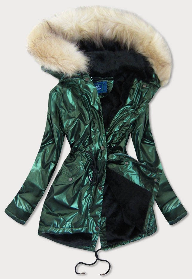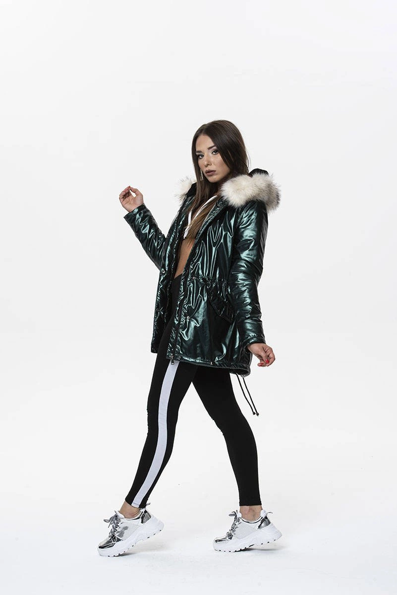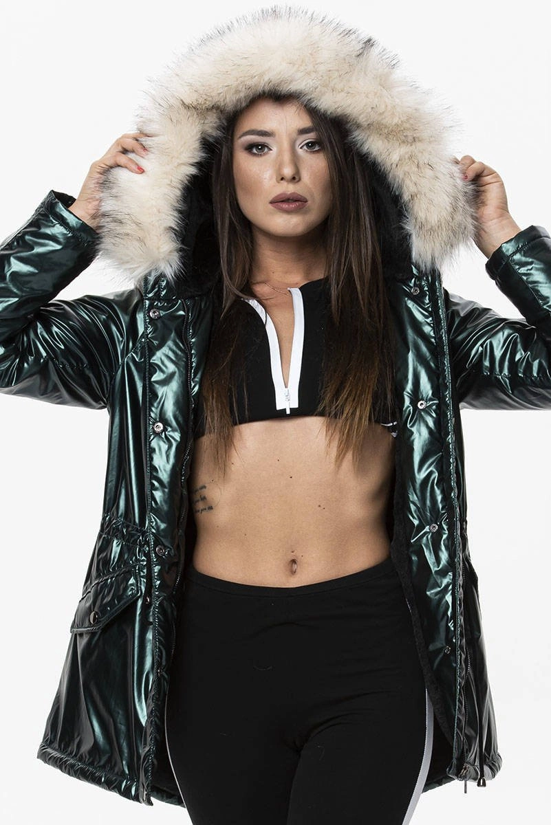 DAMSKA BŁYSZCZĄCA KURTKA PRZEJŚCIOWA ZIELONA (19143)