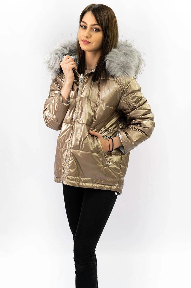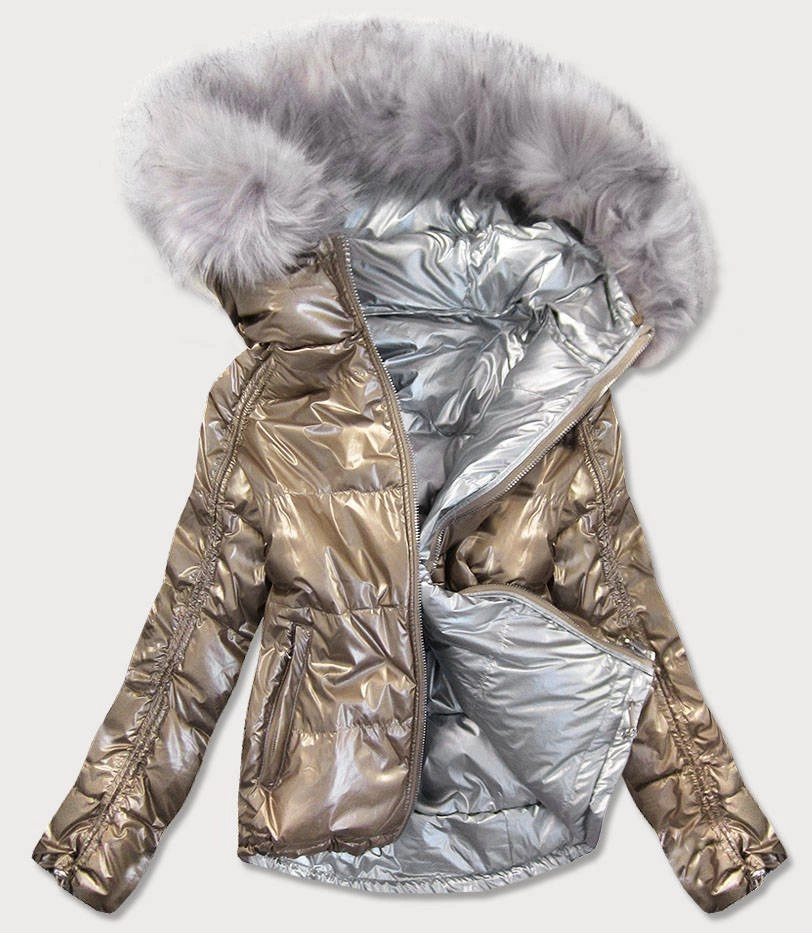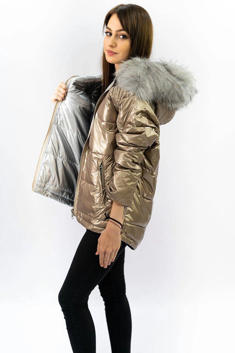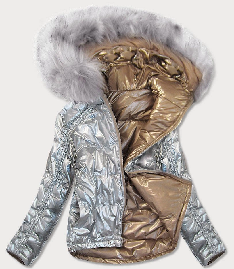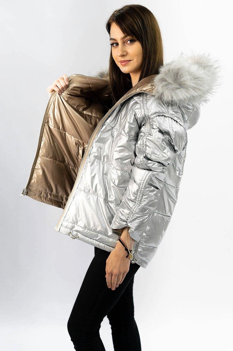 DWUSTRONNA METALICZNA KURTKA DAMSKA ZŁOTO-SREBRNA (GWW1908)