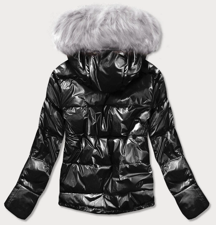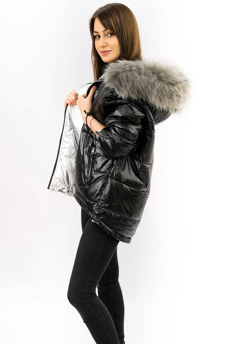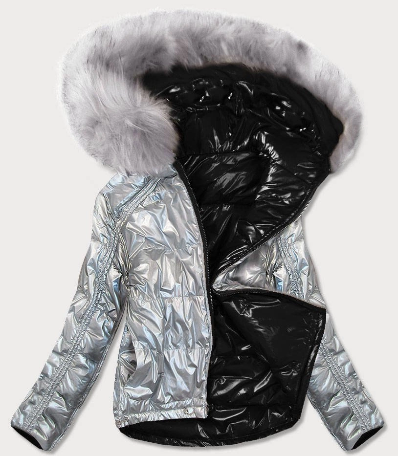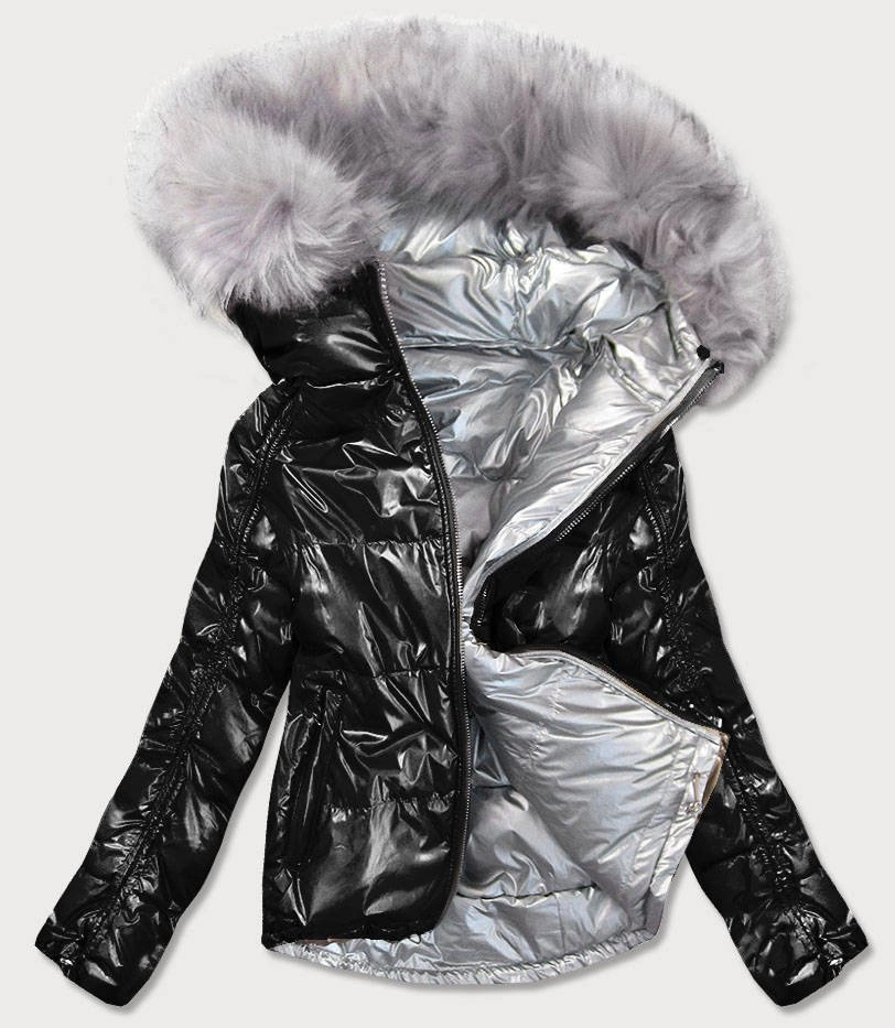 DWUSTRONNA METALICZNA KURTKA DAMSKA CZARNO-SREBRNA (GWW1908)