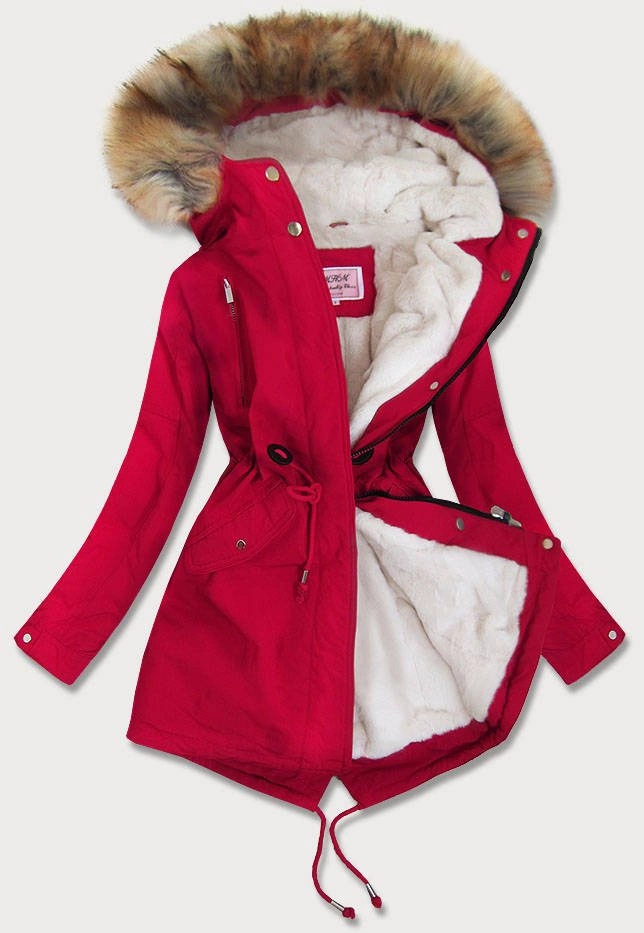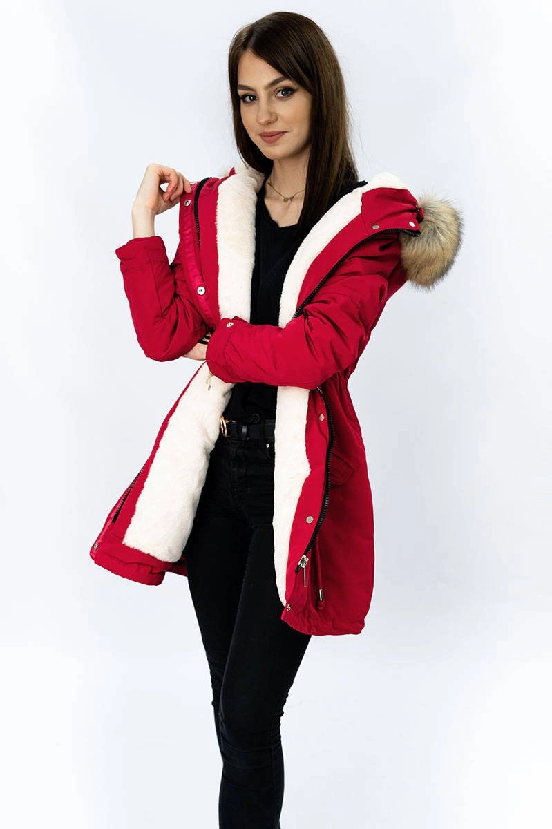 DAMSKA PARKA ZIMOWA NA MISIU CZERWONA (W378)