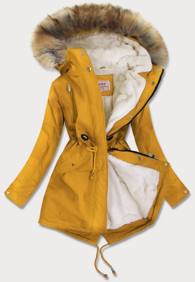 DAMSKA PARKA ZIMOWA NA MISIU ŻÓŁTA (W378BIG)