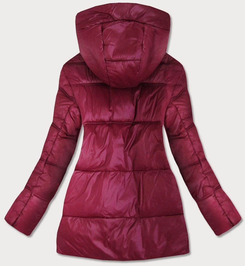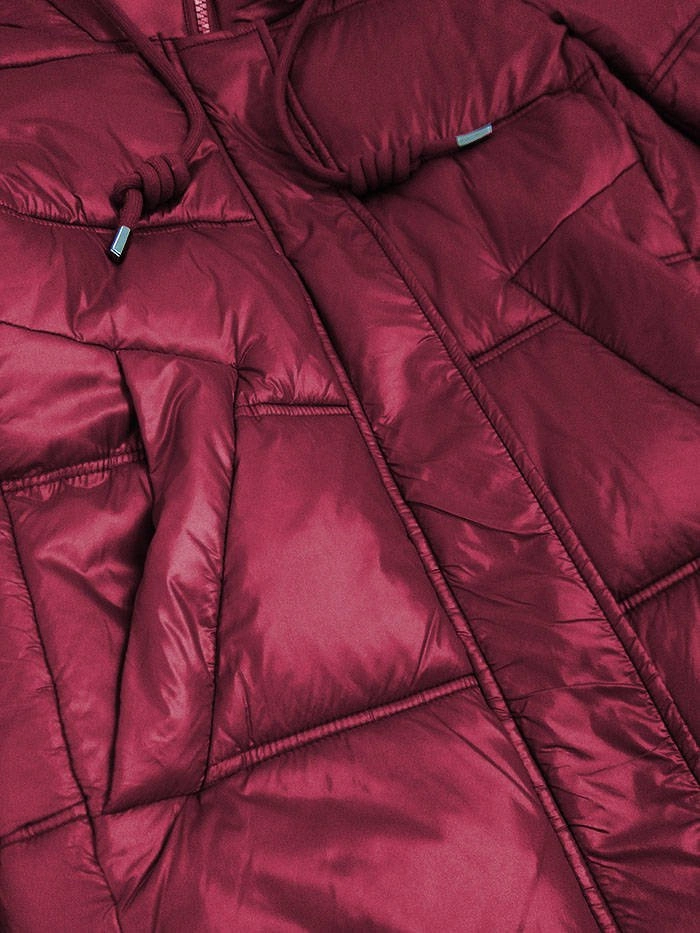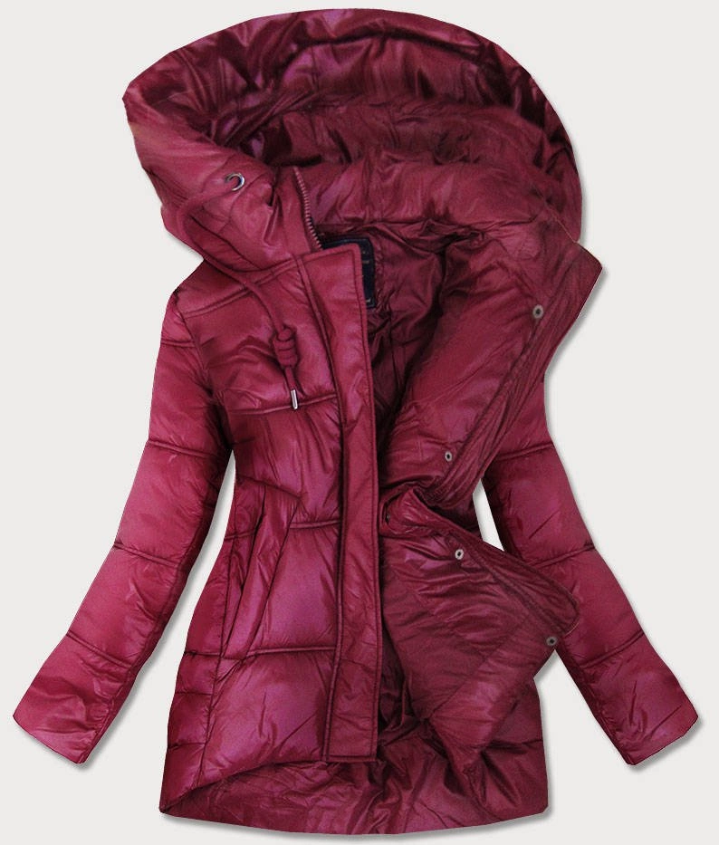 ASYMETRYCZNA DAMSKA KURTKA PIKOWANA BORDOWA (7658)