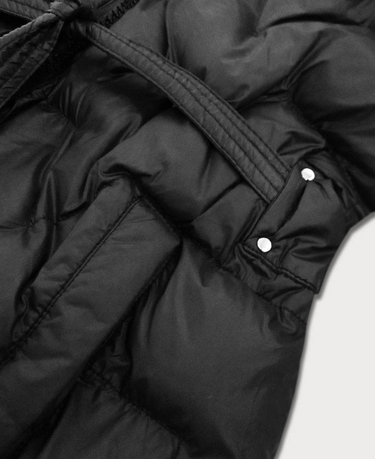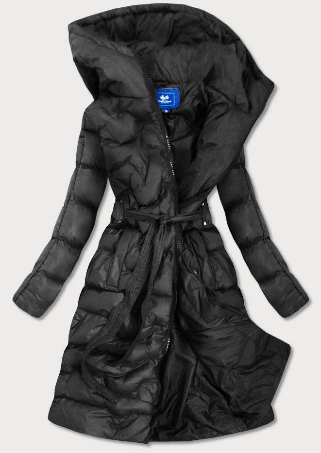 PIKOWANY PŁASZCZ Z PASKIEM CZARNY (1119)