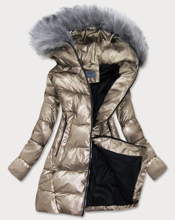 TRAPEZOWA ZIMOWA KURTKA DAMSKA ZŁOTA (B9559-101)