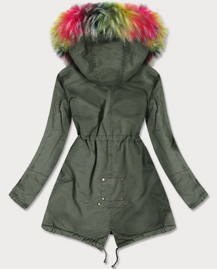 ZIMOWA PARKA DAMSKA Z KOLOROWYM FUTREM KHAKI (D-216#)