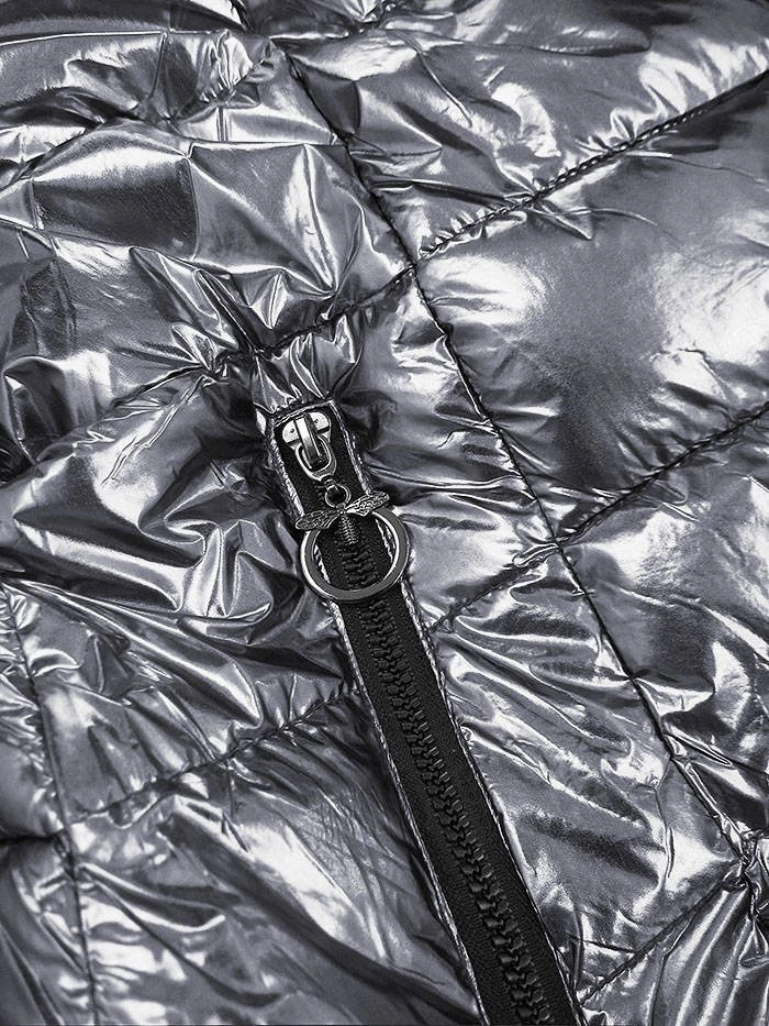 Opinie o KRÓTKA BŁYSZCZĄCA DWUSTRONNA KURTKA DAMSKA SREBRNA (B9542)
