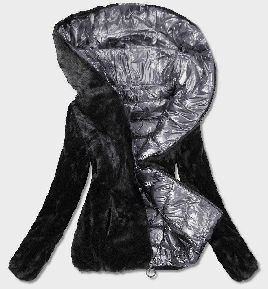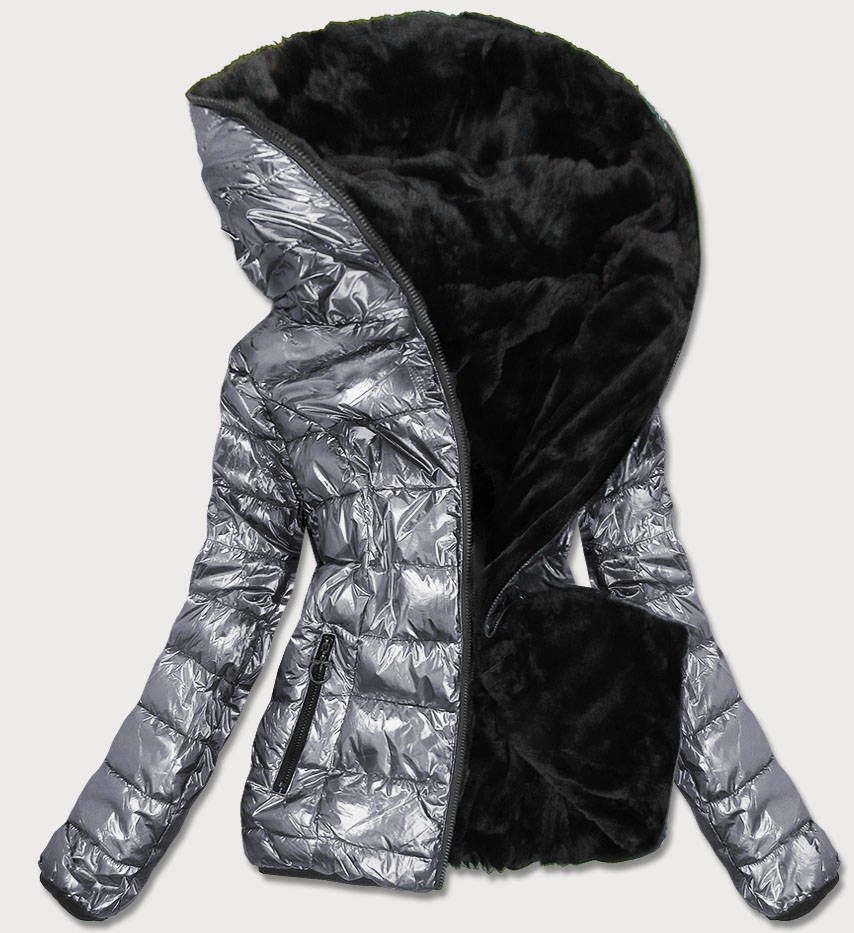 KRÓTKA BŁYSZCZĄCA DWUSTRONNA KURTKA DAMSKA SREBRNA (B9542)