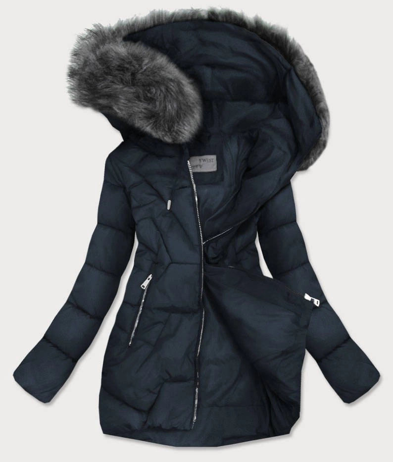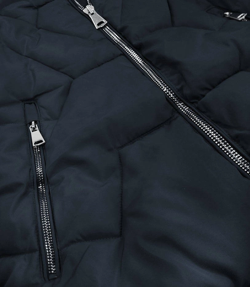 PIKOWANA KURTKA DAMSKA ZIMOWA GRANATOWA (B9527)