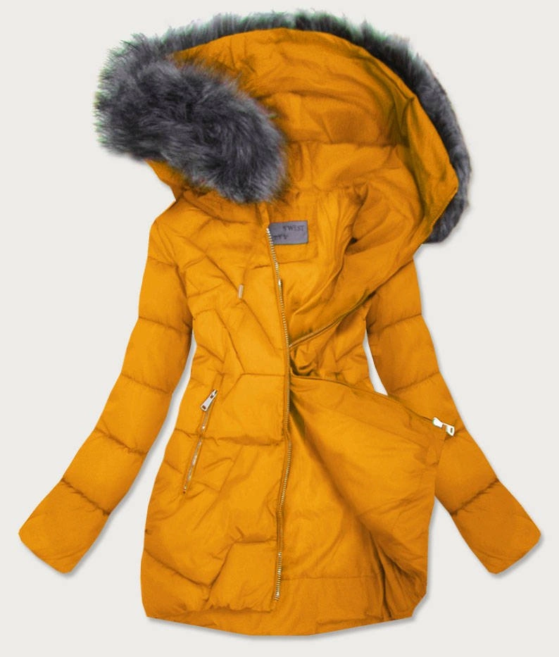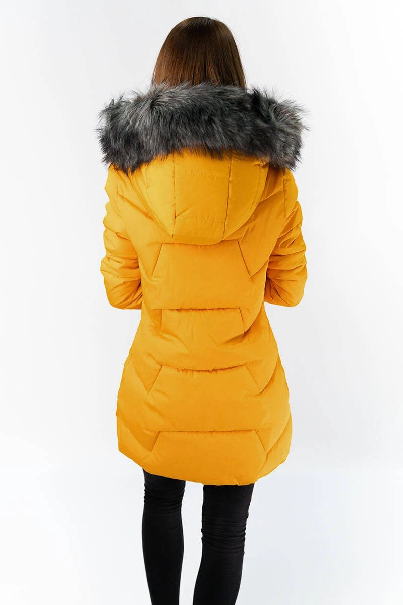 PIKOWANA KURTKA DAMSKA ZIMOWA ŻÓŁTA (B9527)