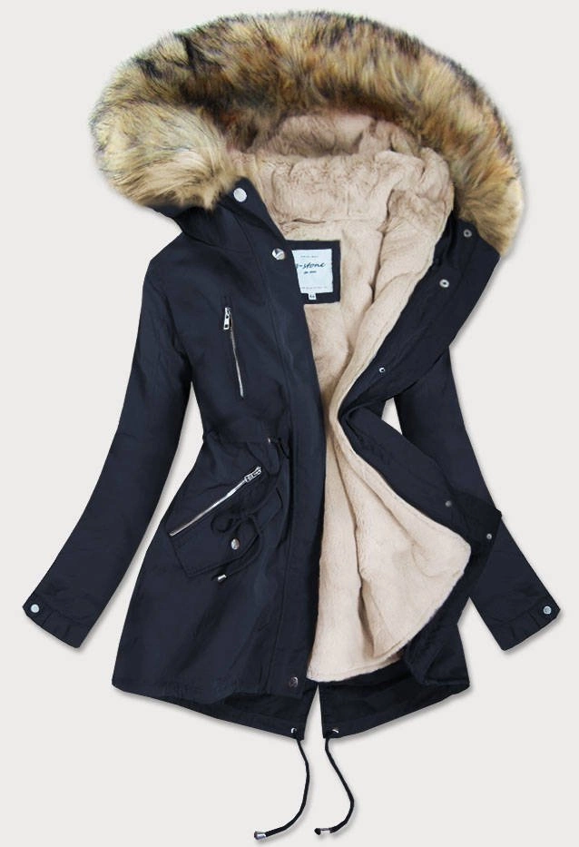 DAMSKA PARKA Z PODPINKĄ GRANATOWA (3399B)