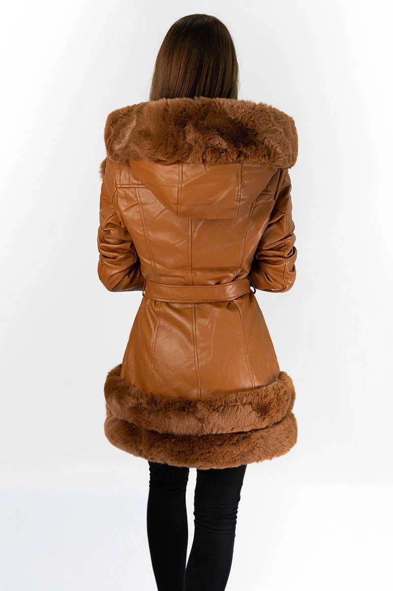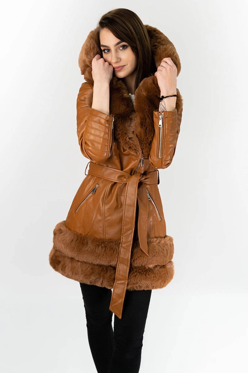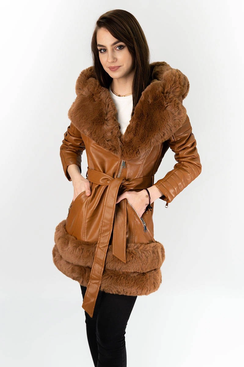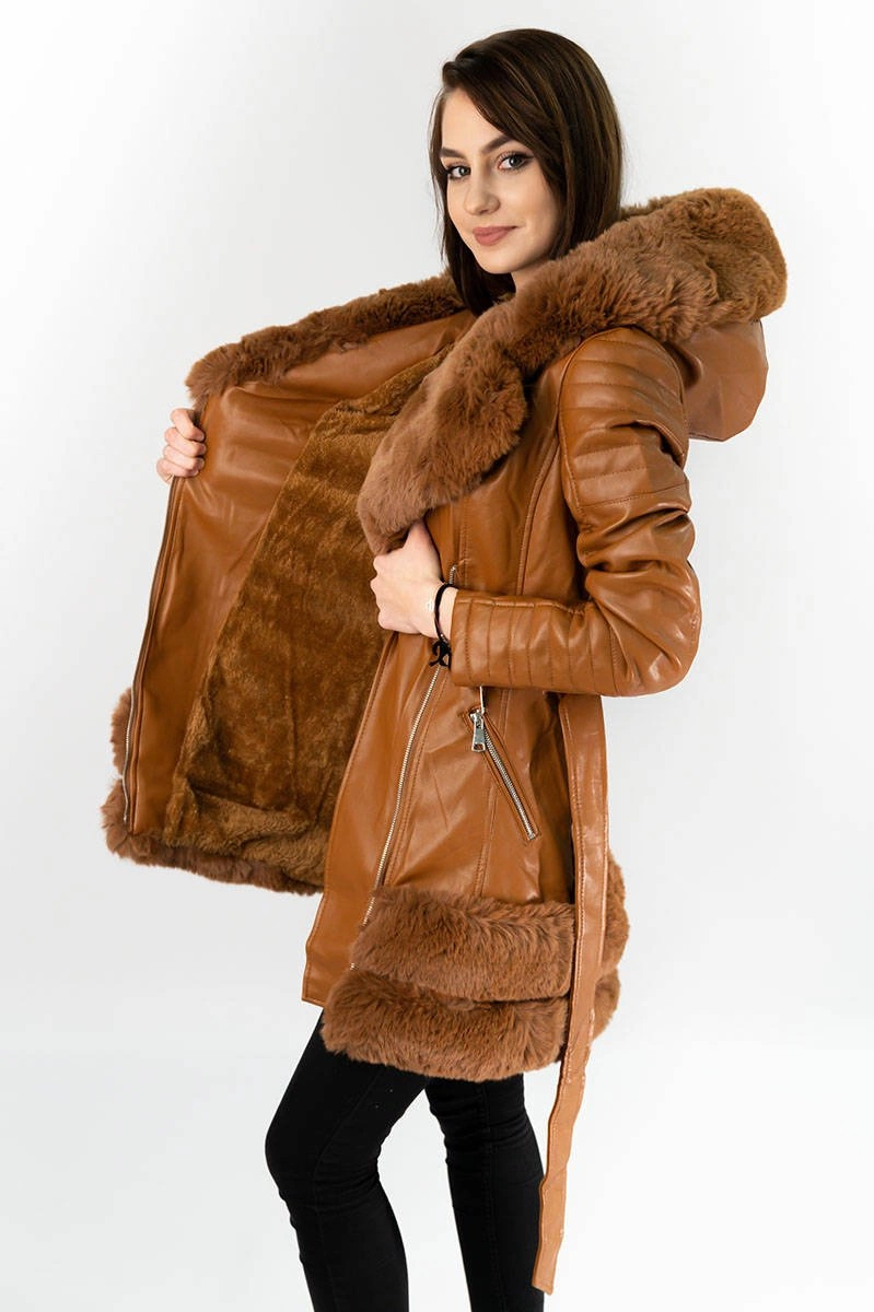 DŁUŻSZA RAMONESKA Z FUTRZANYM KAPTUREM BRĄZOWA (0583)