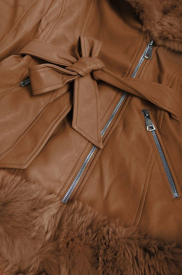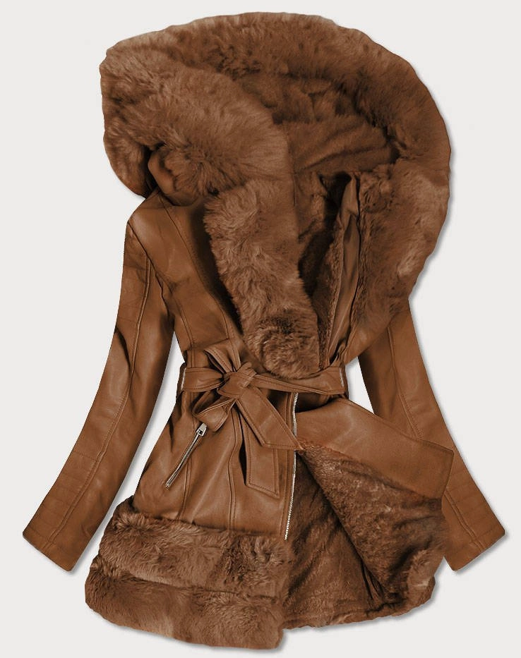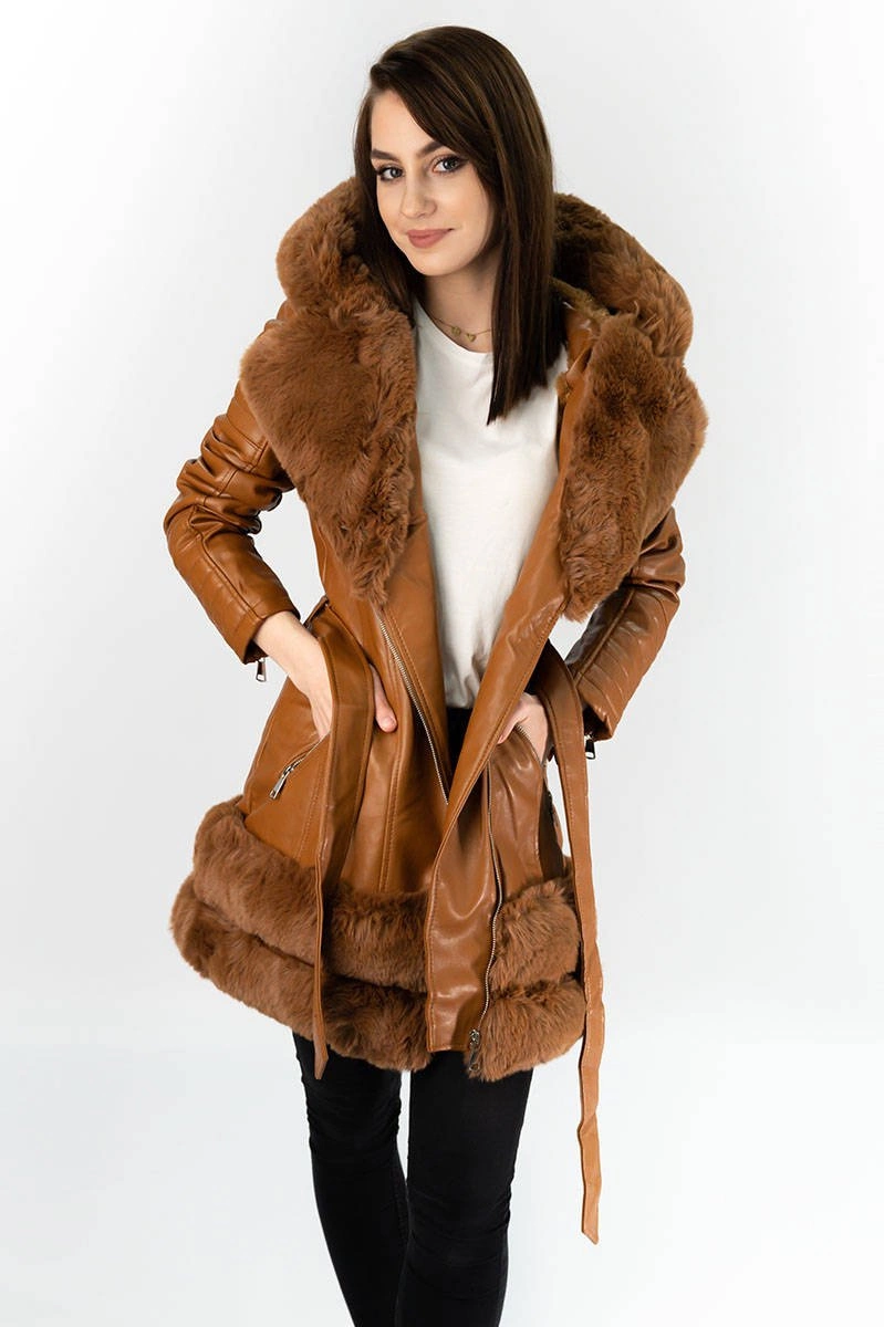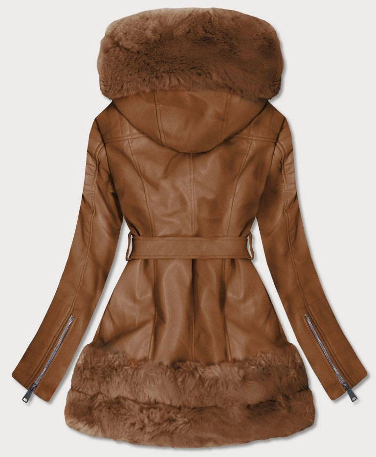 DŁUŻSZA RAMONESKA Z FUTRZANYM KAPTUREM BRĄZOWA (0583)