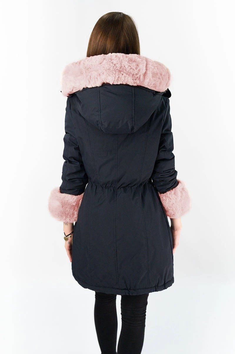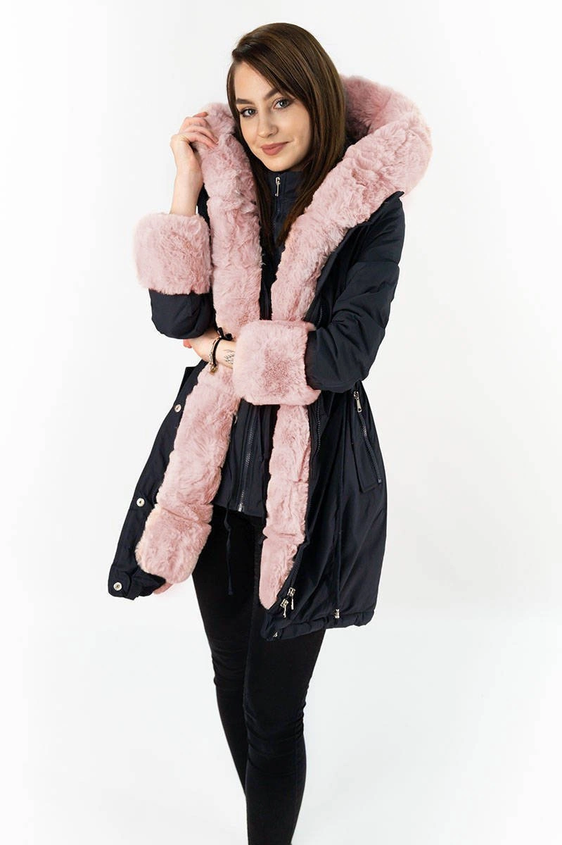 Opinie o DAMSKA PARKA ZIMOWA Z FUTREM GRANATOWO-RÓŻOWA (B9550)