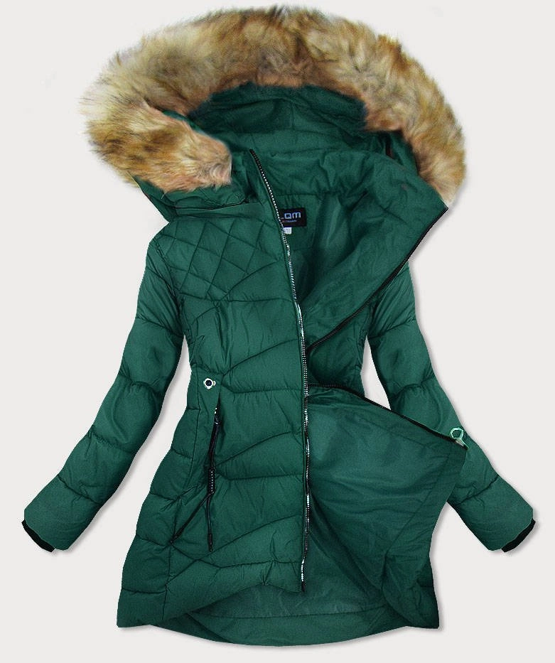 PIKOWANA KURTKA DAMSKA Z KAPTUREM ZIELONA (808BIG)