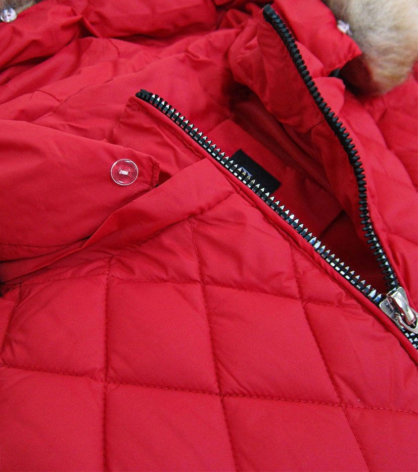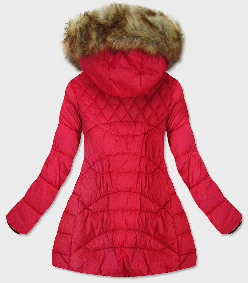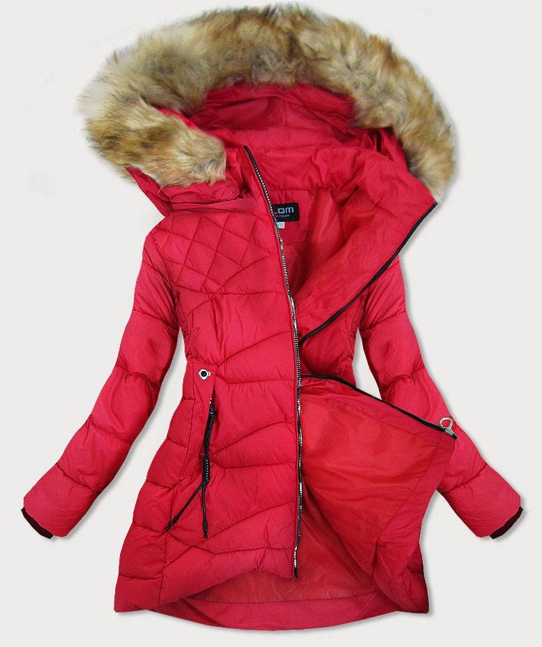 PIKOWANA KURTKA DAMSKA Z KAPTUREM CZERWONA (808BIG)