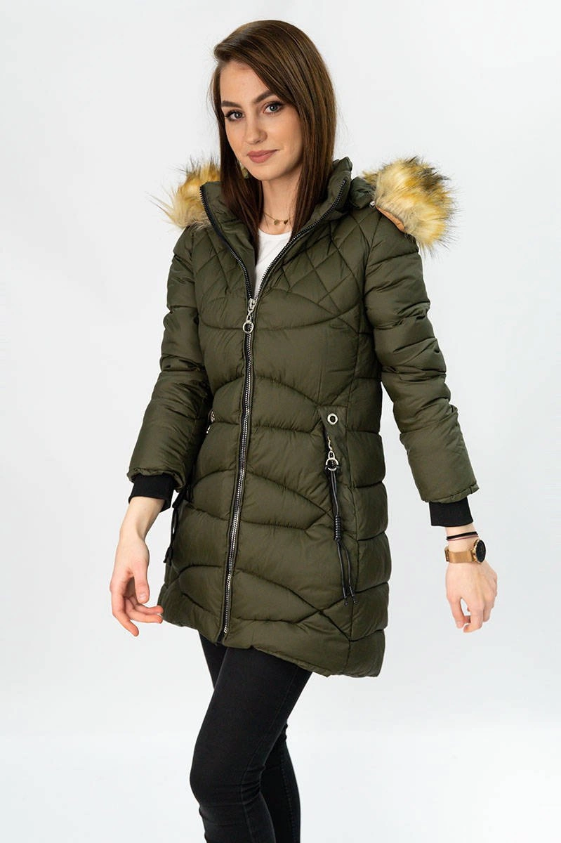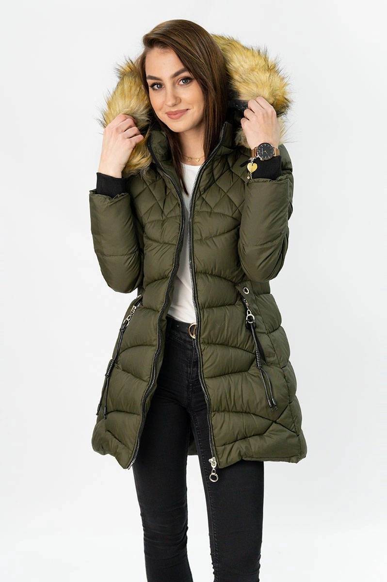 PIKOWANA DAMSKA KURTKA Z KAPTUREM KHAKI (808)