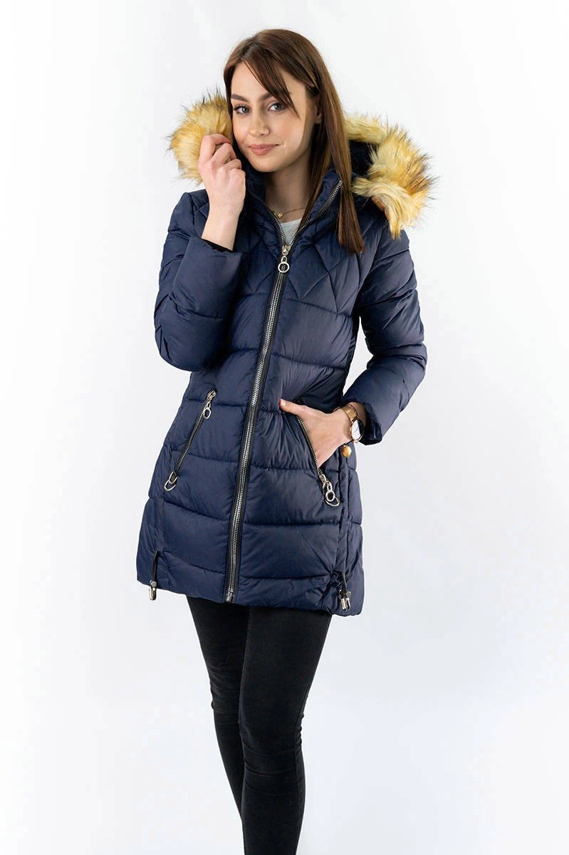 PIKOWANA DAMSKA KURTKA Z KAPTUREM GRANATOWA (1907)