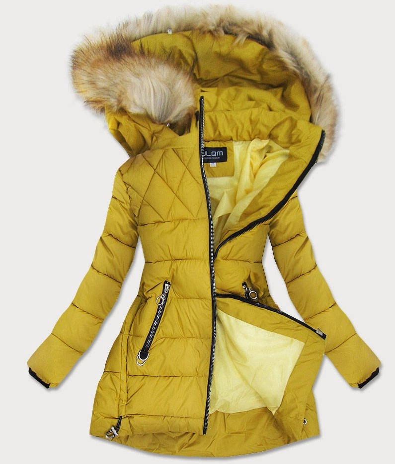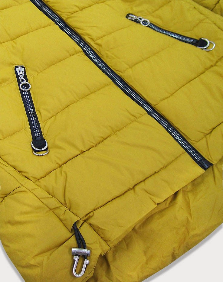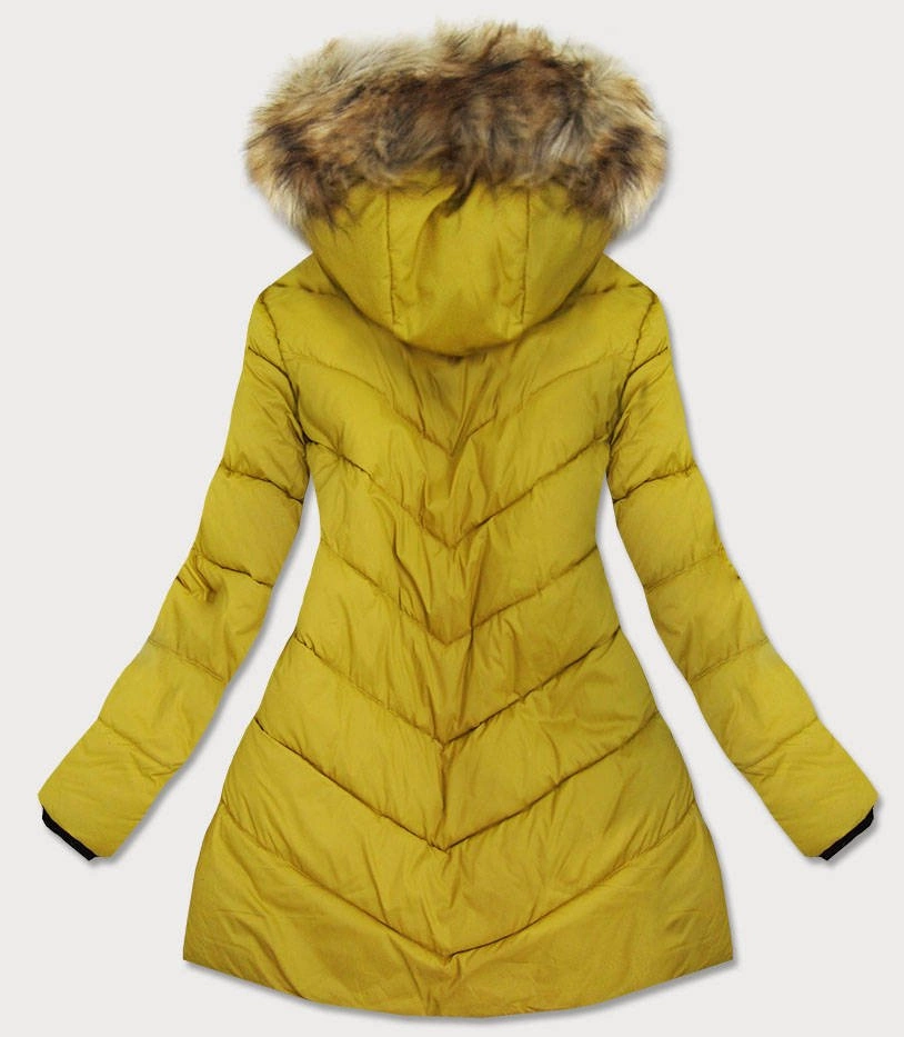 PIKOWANA DAMSKA KURTKA Z KAPTUREM MUSZTARDOWA (1907BIG)