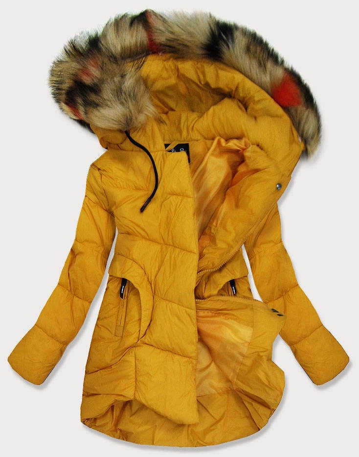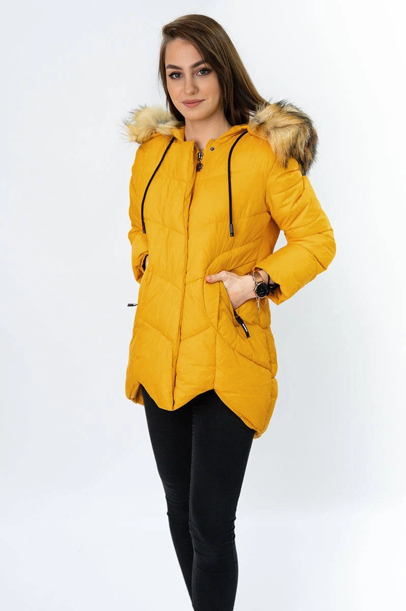 PIKOWANA KURTKA DAMSKA ZIMOWA ŻÓŁTA (209-1)
