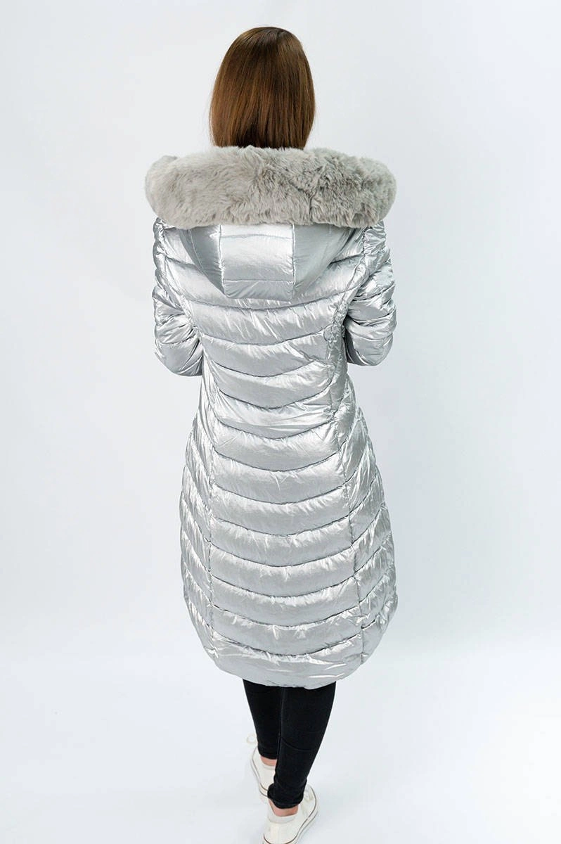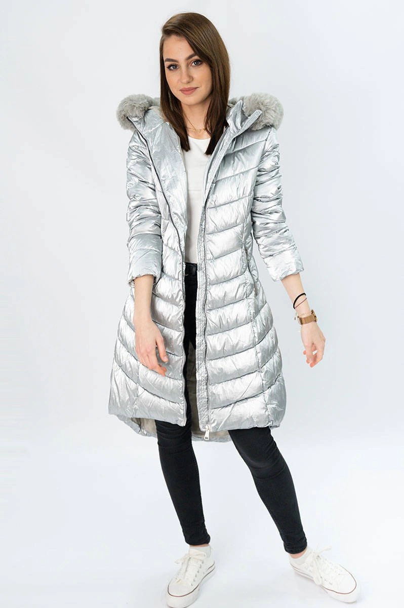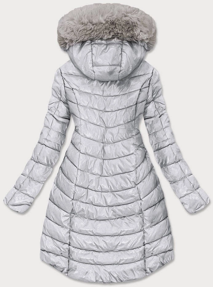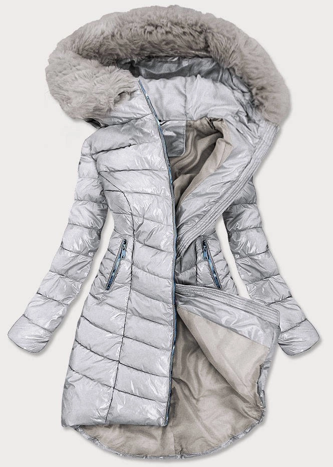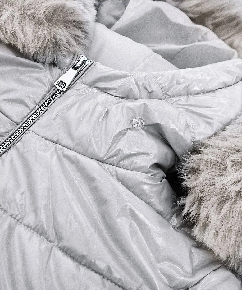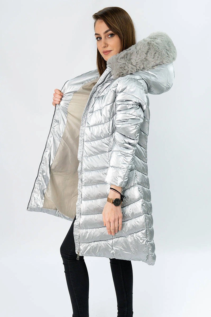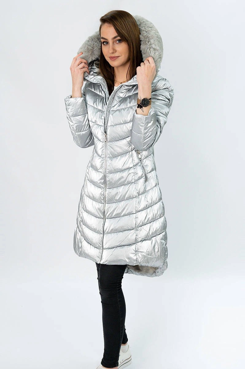 ASYMETRYCZNA DAMSKA KURTKA ZIMOWA SREBRNA (F7052)