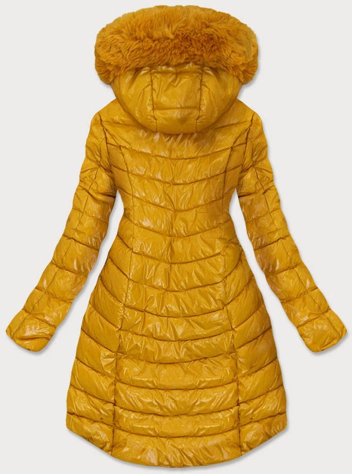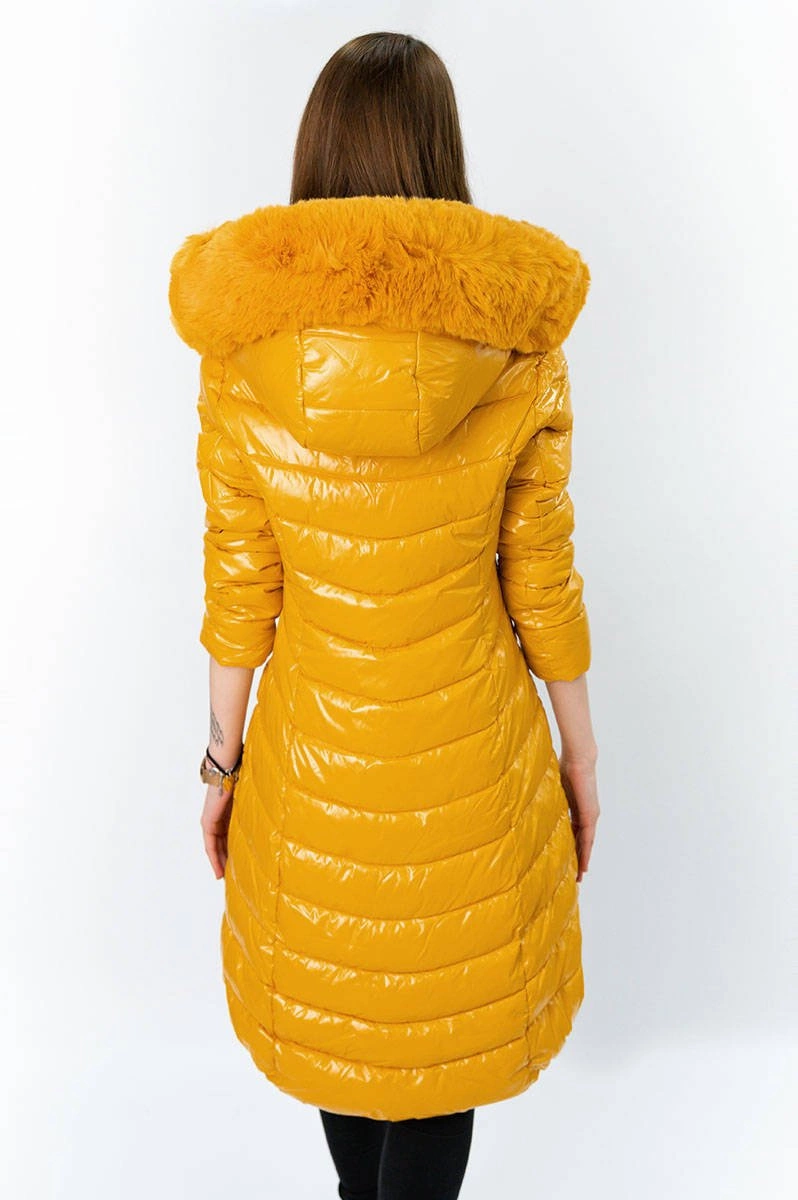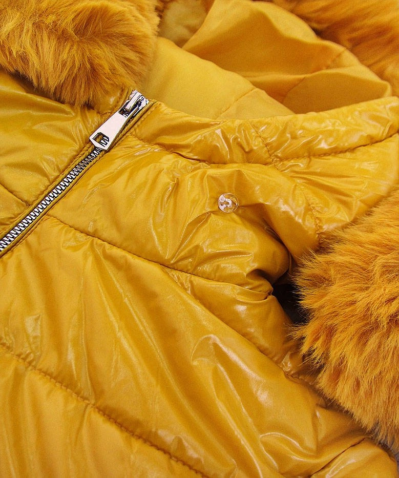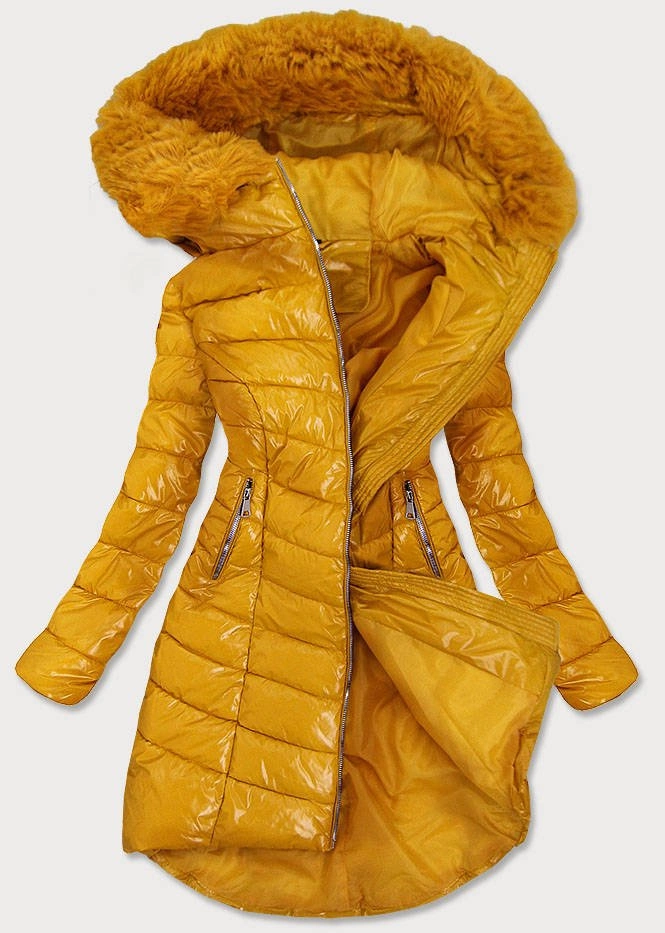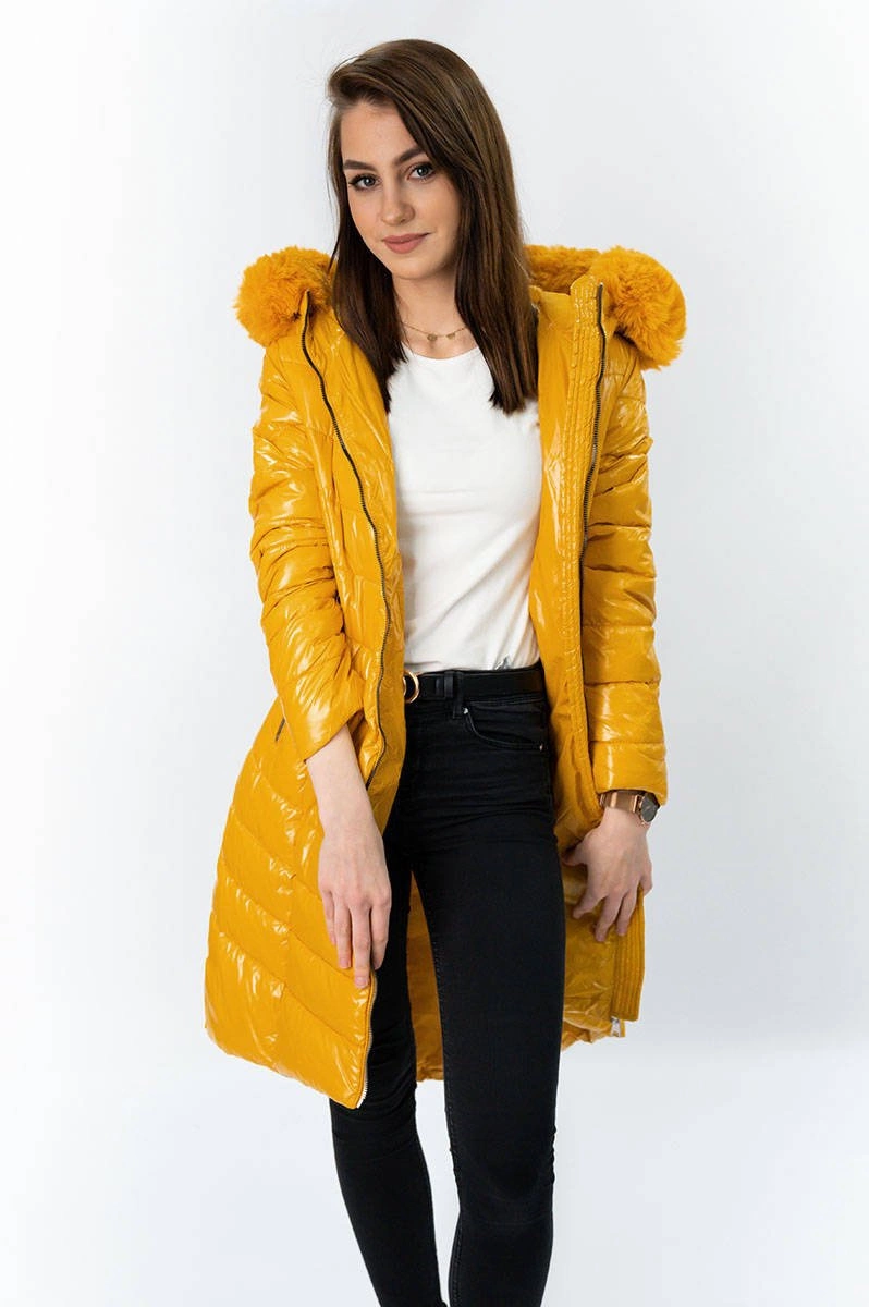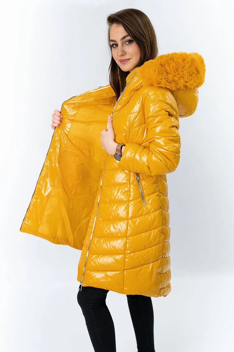 ASYMETRYCZNA DAMSKA KURTKA ZIMOWA ŻÓŁTA (F7052)