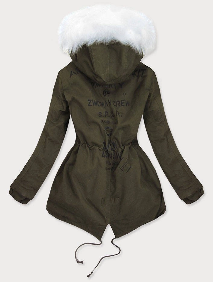KURTKA PARKA DAMSKA ZIMOWA KHAKI-BIAŁA (613)