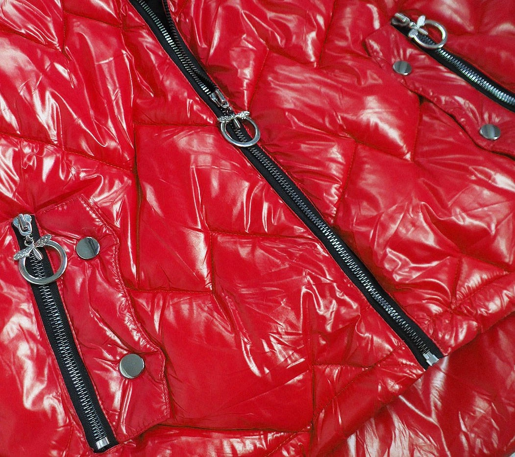 PIKOWANA DAMSKA KURTKA ZIMOWA CZERWONA (B9540)