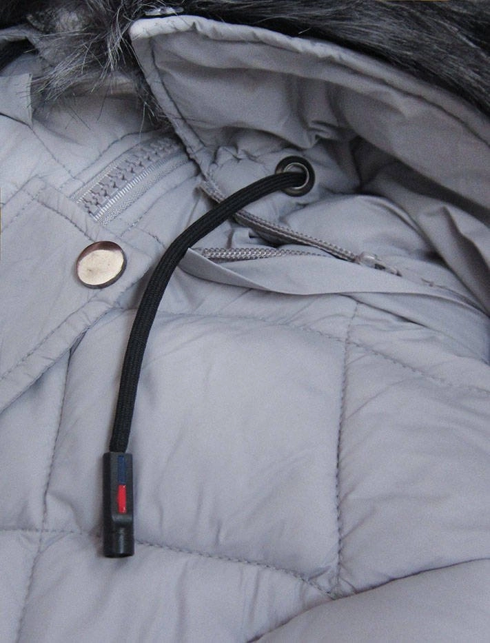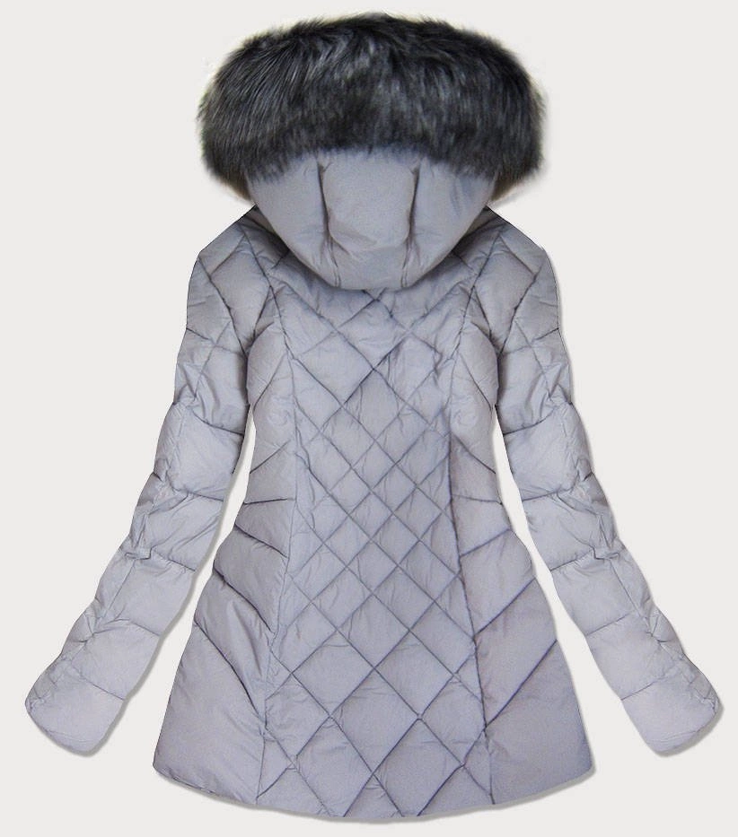 PIKOWANA KURTKA DAMSKA ZIMOWA Z KAPTUREM SZARA (2015-2)