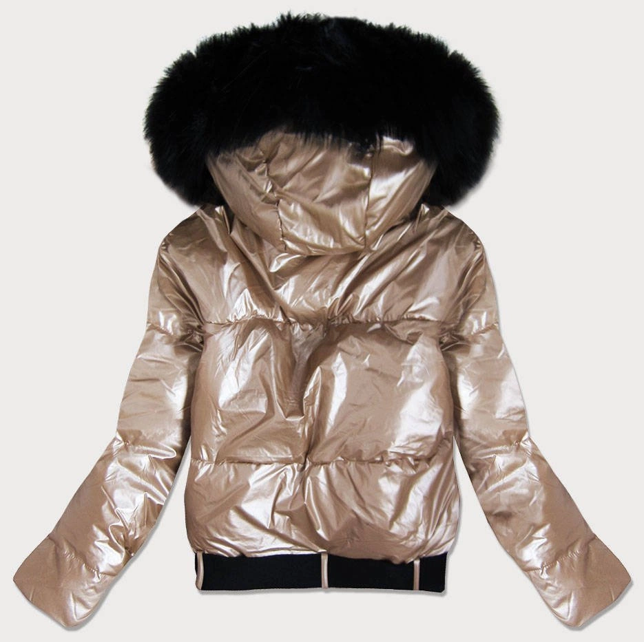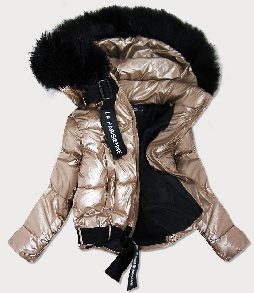 DAMSKA BŁYSZCZĄCA KURTKA Z KAPTUREM ZŁOTA (8297)