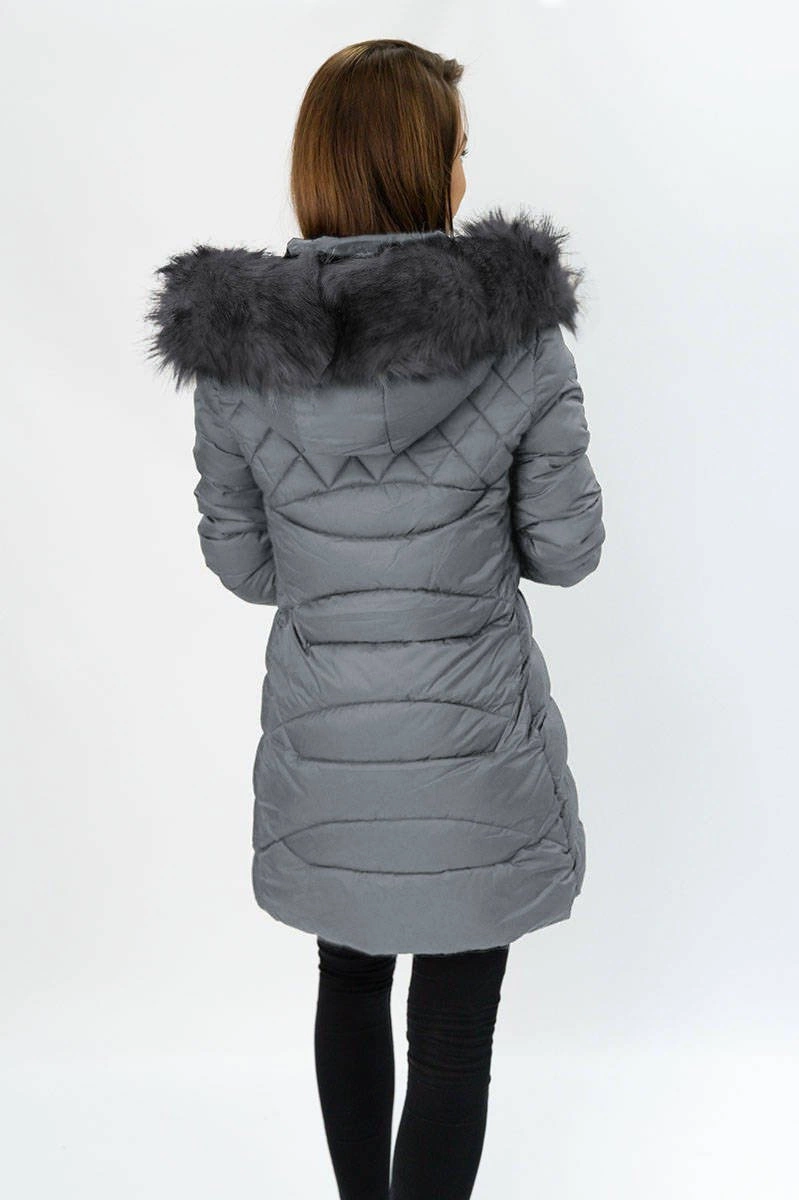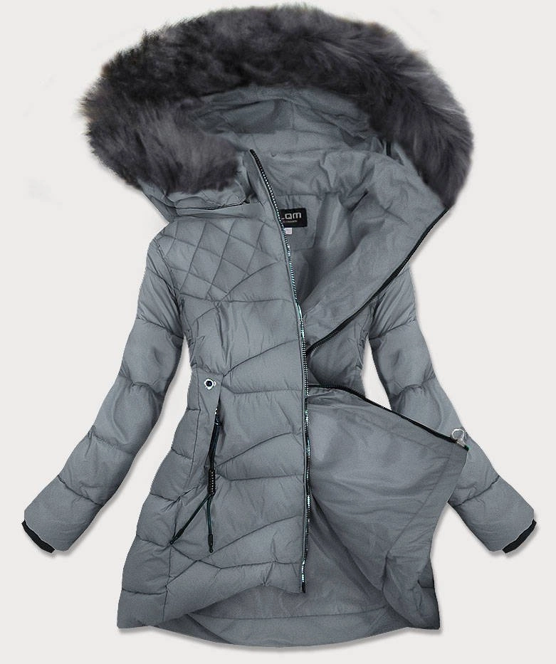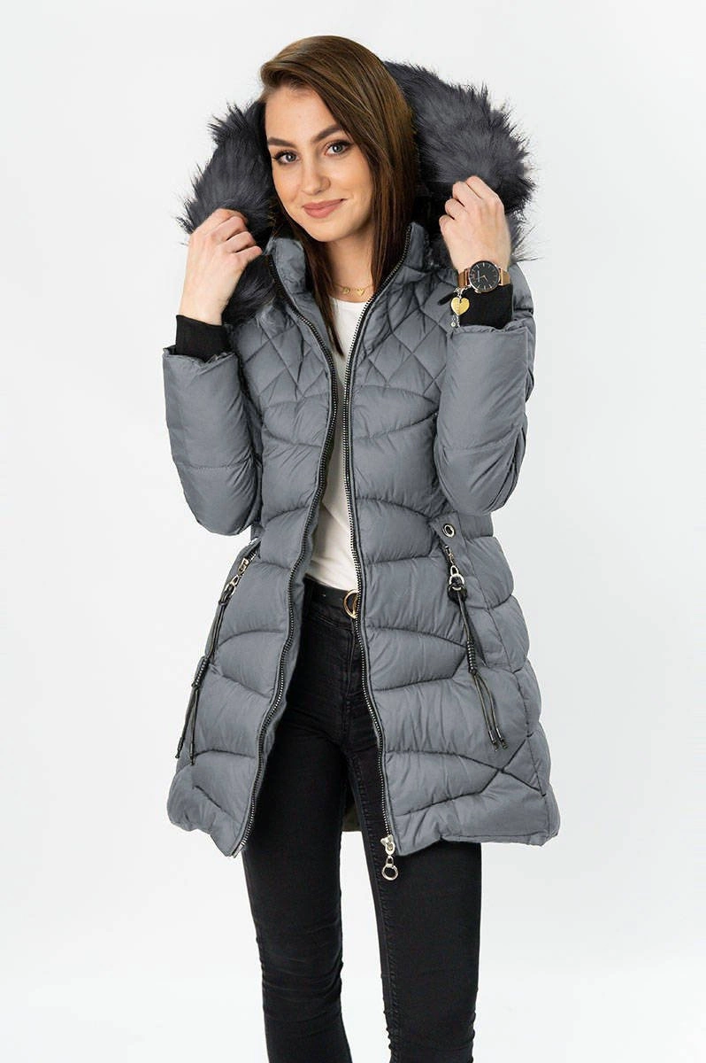 PIKOWANA DAMSKA KURTKA Z KAPTUREM SZARA (808)