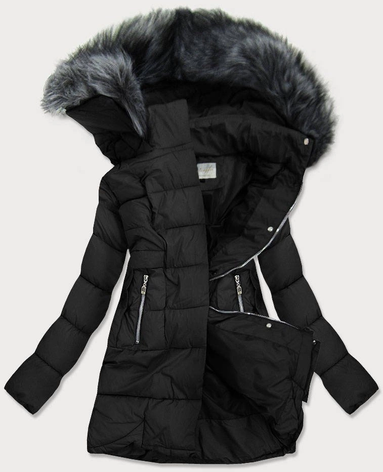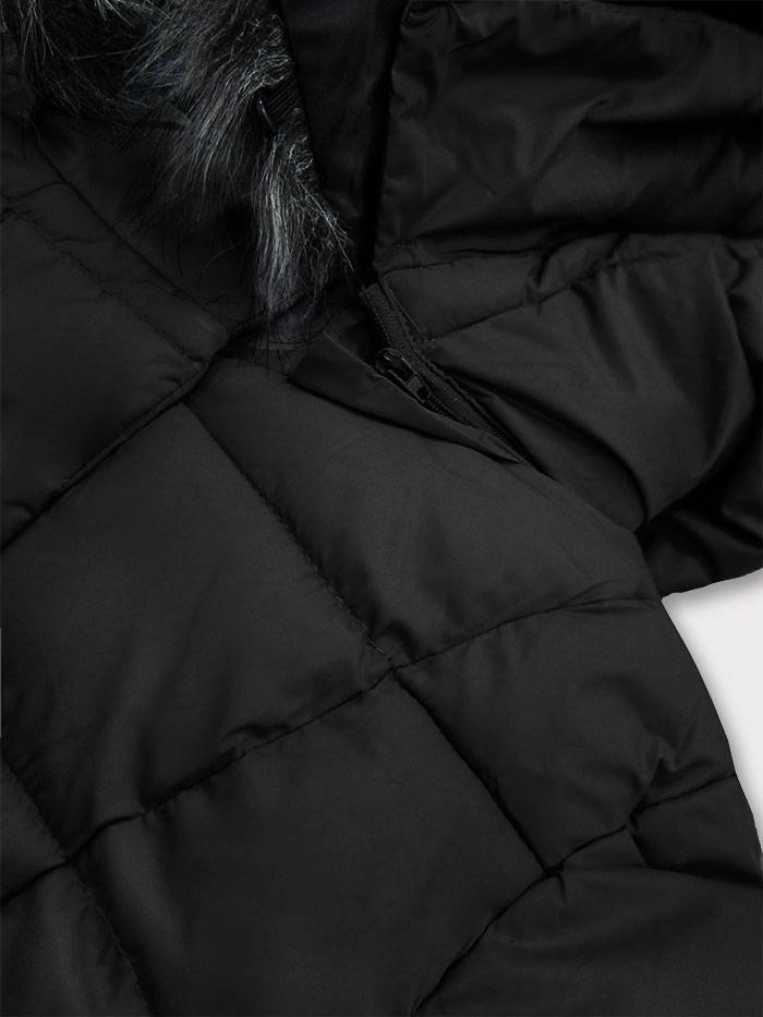 DAMSKA KURTKA PIKOWANA ZIMOWA Z KAPTUREM CZARNA (17-032)