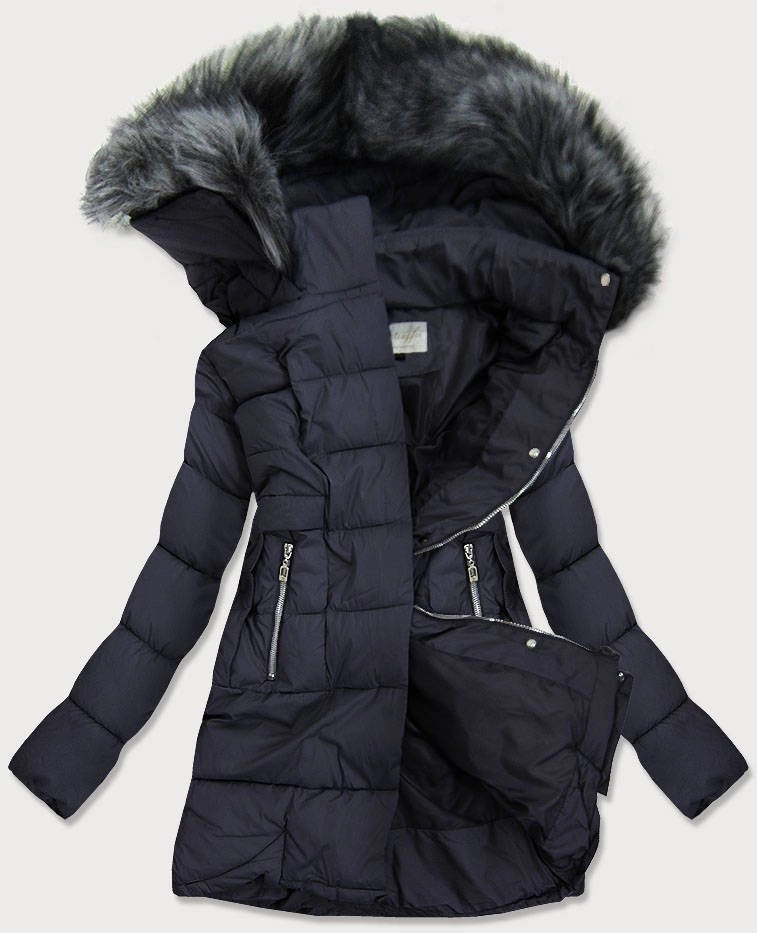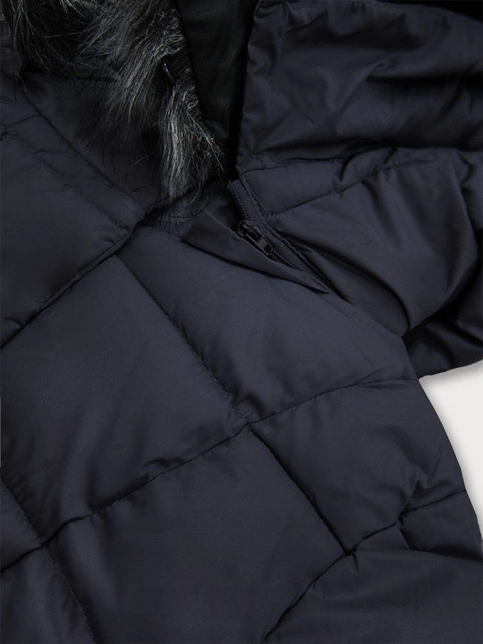 DAMSKA KURTKA PIKOWANA ZIMOWA Z KAPTUREM GRANATOWA (17-032)