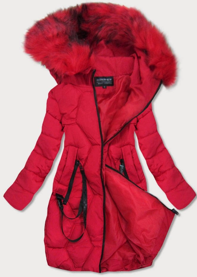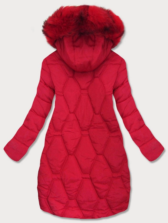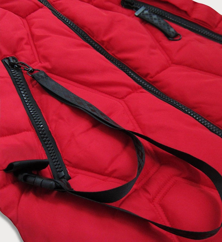 PIKOWANA KURTKA DAMSKA ZIMOWA Z OZDOBNYMI TAŚMAMI CZERWONA (20163)