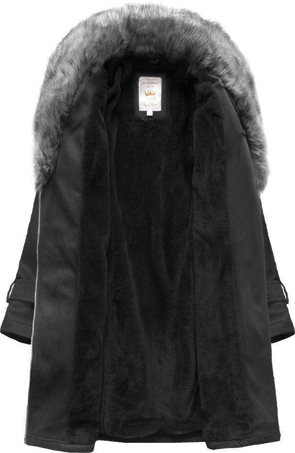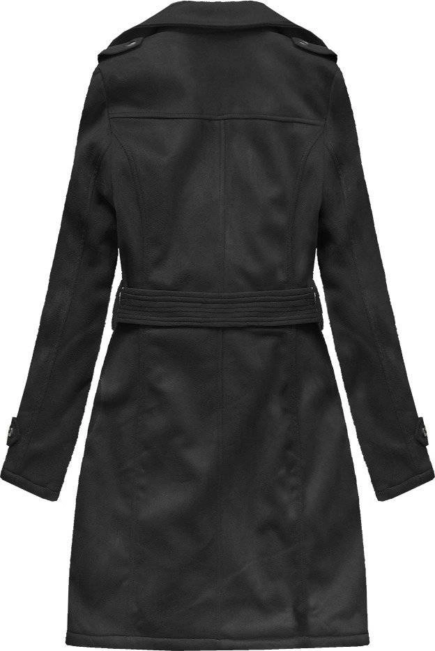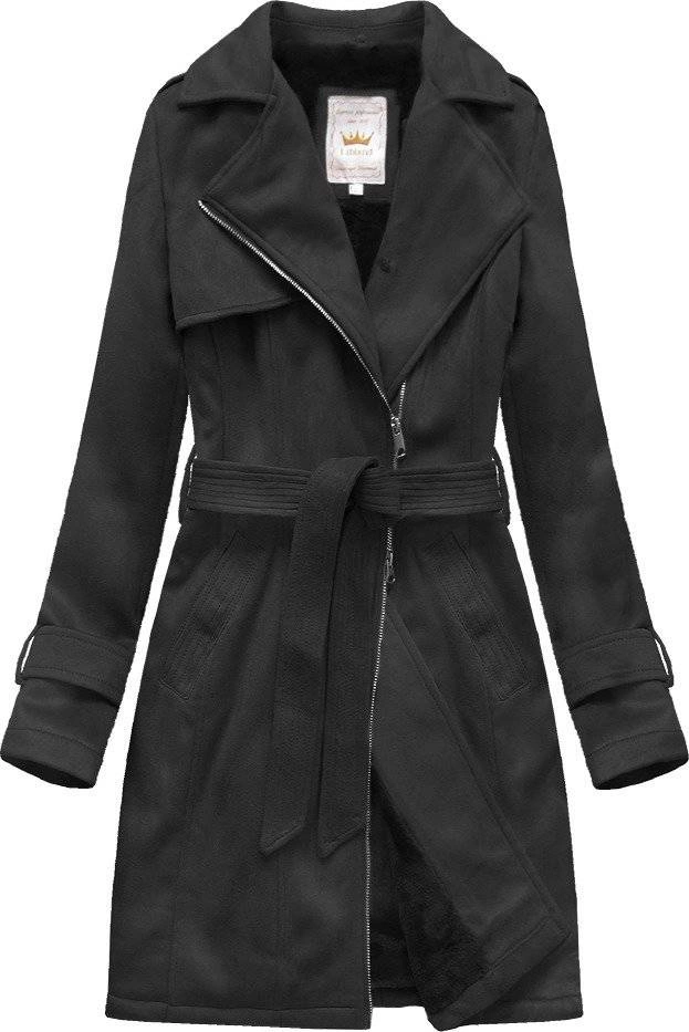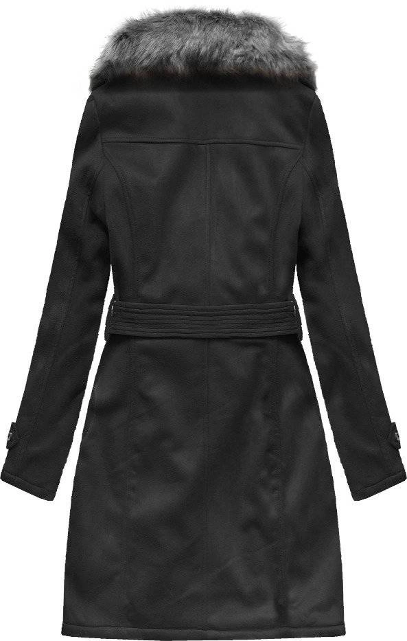 ZAMSZOWY DAMSKI PŁASZCZ ZIMOWY Z PASKIEM CZARNY/SZARY (6515)