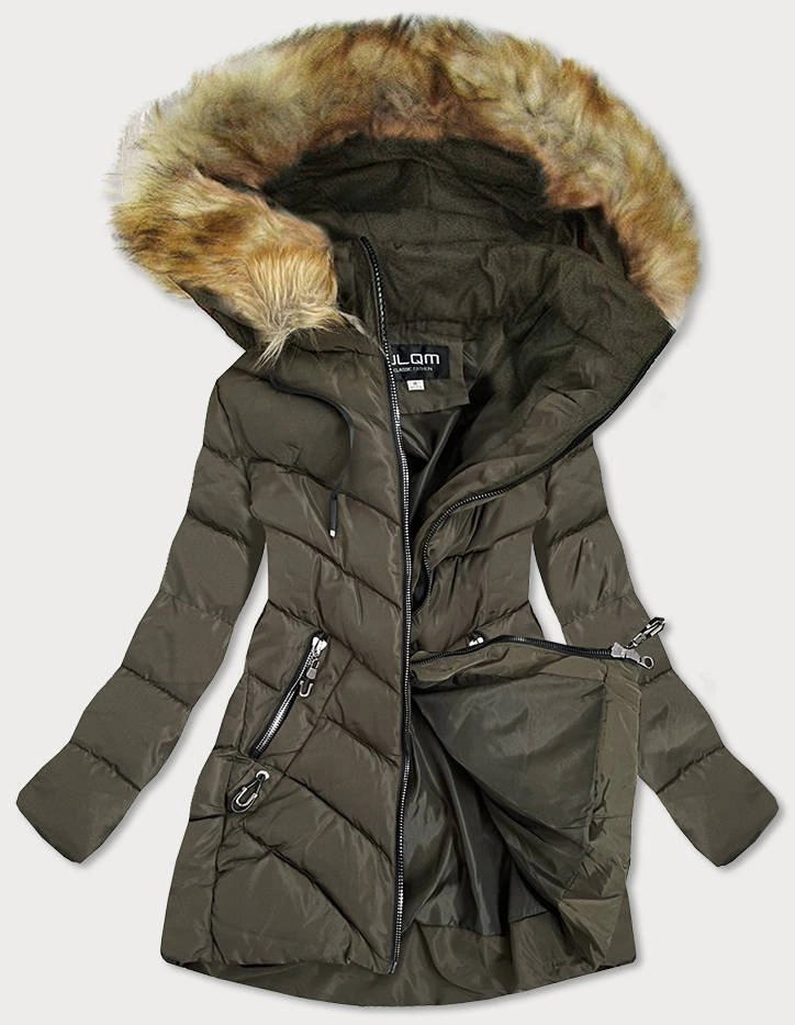 PIKOWANA DAMSKA KURTKA Z KAPTUREM KHAKI (957)