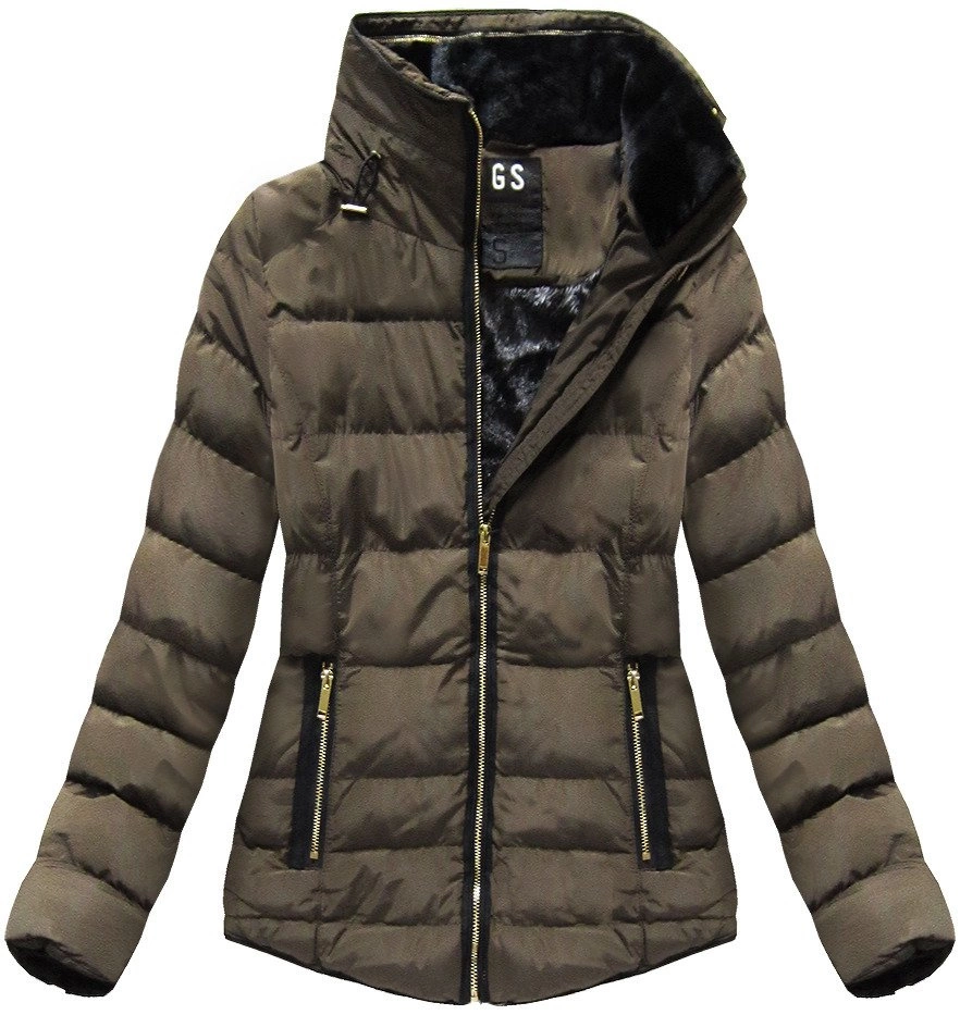 KRÓTKA KURTKA DAMSKA ZIMOWA Z KAPTUREM BRĄZOWA (WZ575)