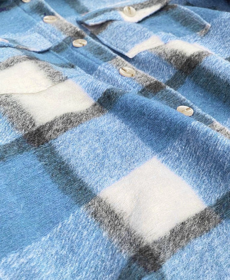 KOSZULOWY PŁASZCZ DAMSKI KRATA NIEBIESKI (2431)