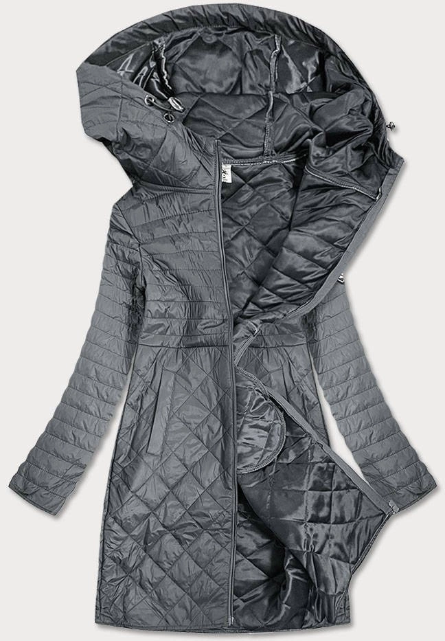 PIKOWANA KURTKA DAMSKA Z KAPTUREM SZARA (Q359#)