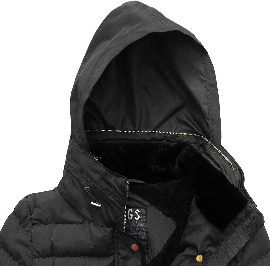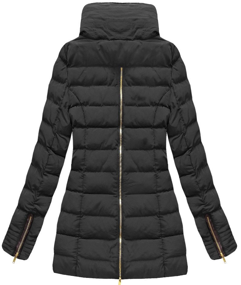 PIKOWANA KURTKA DAMSKA ZIMOWA Z KAPTUREM CZARNA (WZ567)