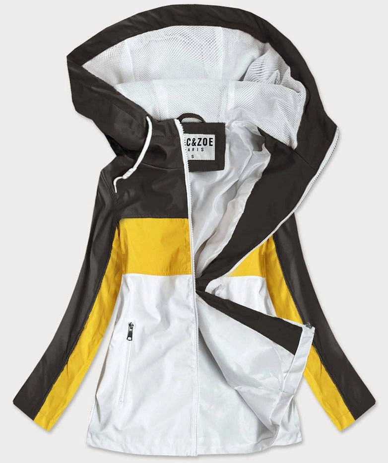 KURTKA DAMSKA WIATRÓWKA Z KAPTUREM CZARNO/ŻÓŁTA (YR1968)