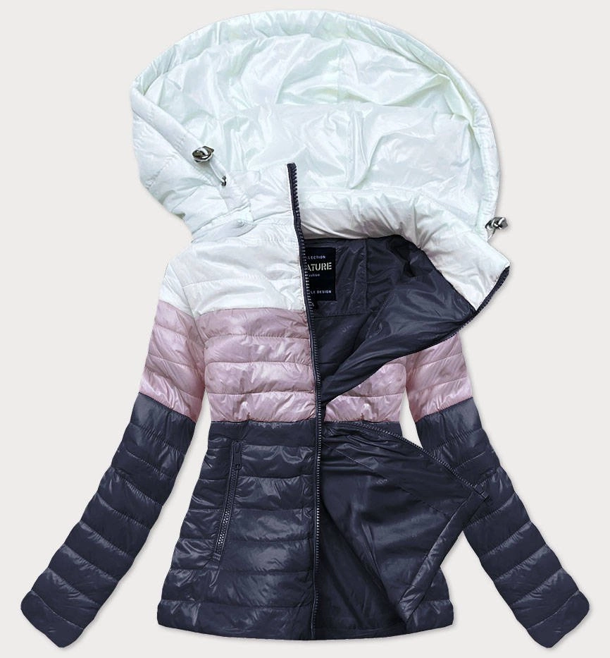 PIKOWANA KURTKA DAMSKA TRZYKOLOROWA BIAŁY/RÓŻ/GRANAT (6313)