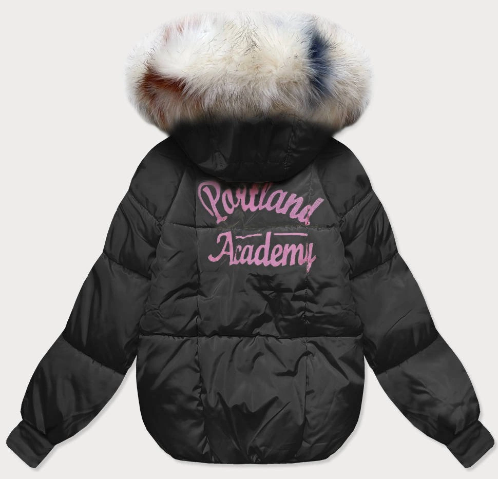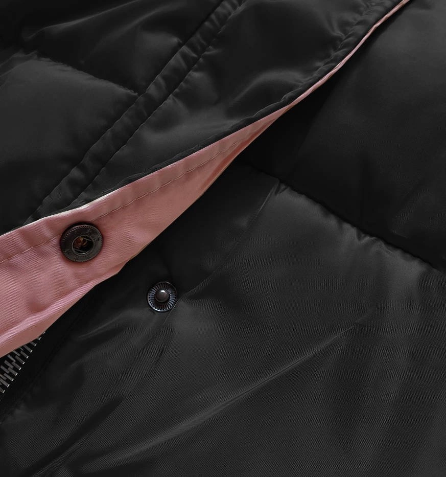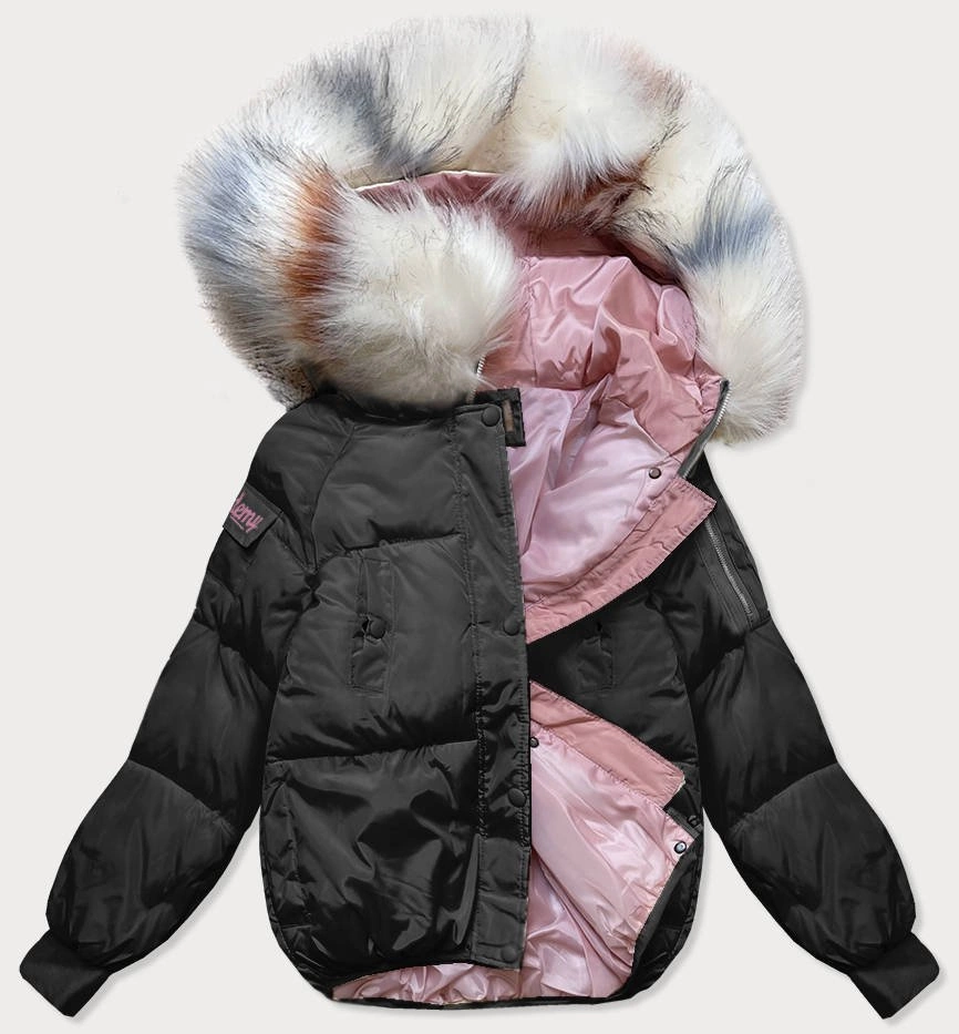KRÓTKA KURTKA ZIMOWA DAMSKA OVERSIZE CZARNO-RÓŻOWA (729ART)