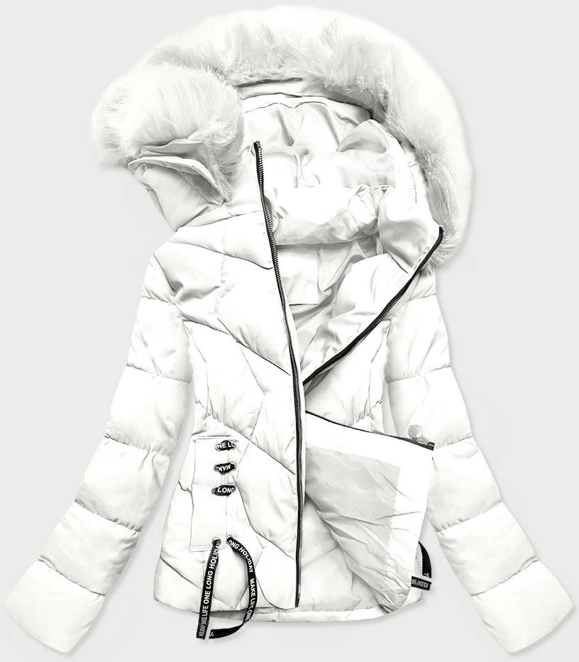 DAMSKA KRÓTKA KURTKA ZIMOWA Z KAPTUREM BIAŁA (H1021-82)