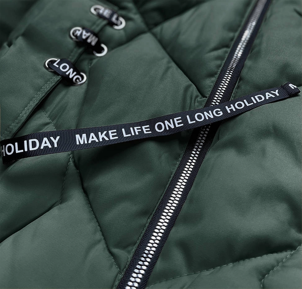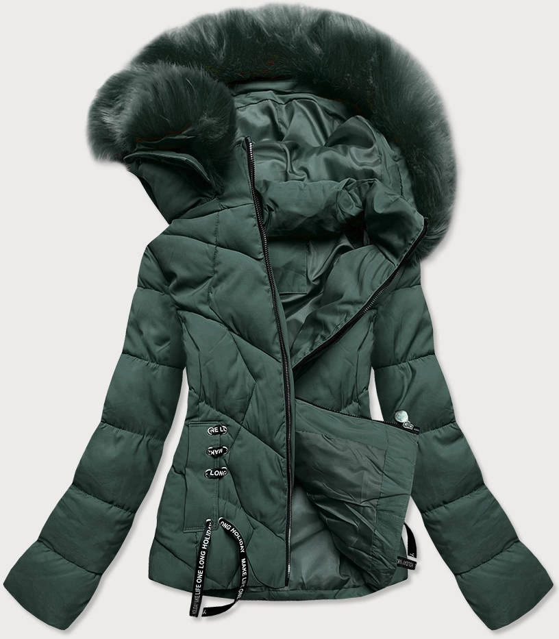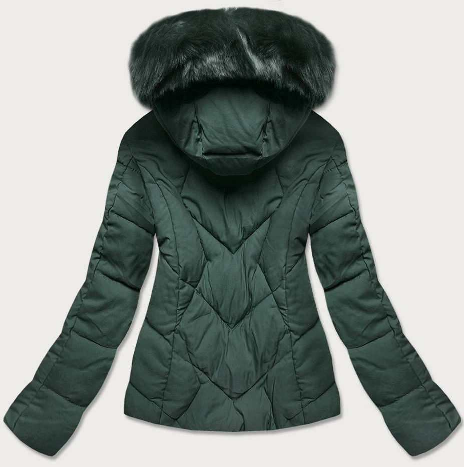 DAMSKA KRÓTKA KURTKA ZIMOWA Z KAPTUREM BUTELKOWA ZIELEŃ (H1021-26)