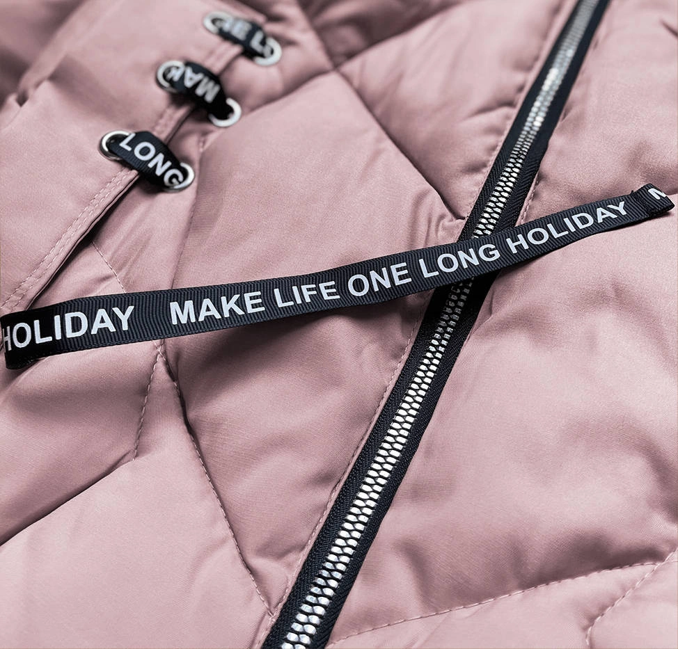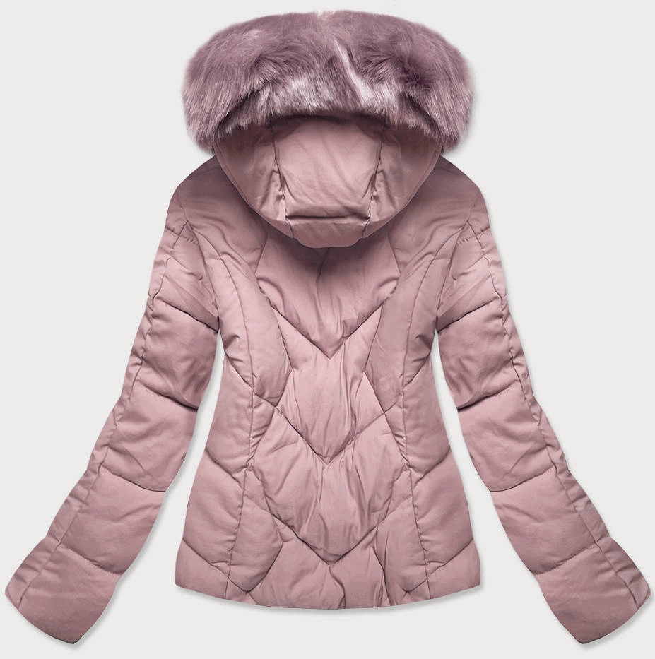 DAMSKA KRÓTKA KURTKA ZIMOWA Z KAPTUREM JASNORÓŻOWA (H1021-52)