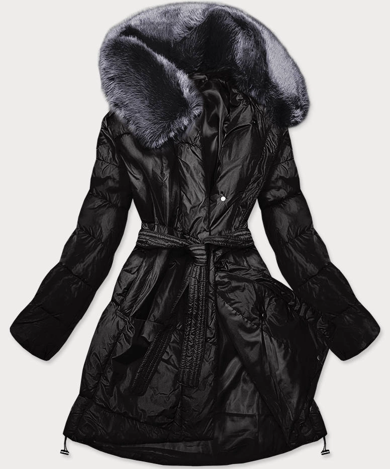 Opinie o Damski zimowy płaszcz z futrem czarny (008)