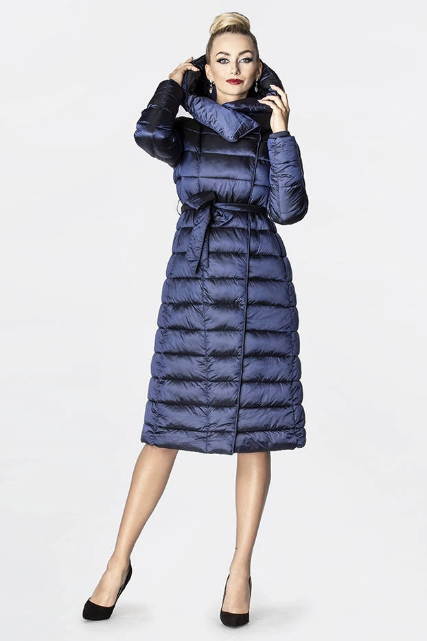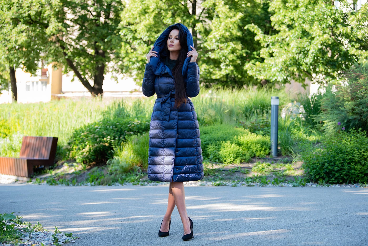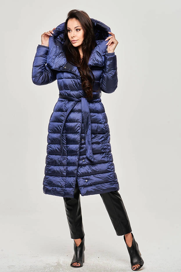 Opinie o PIKOWANY PŁASZCZ Z WYSOKĄ STÓJKĄ I KAPTUREM GRANATOWY (J9-062)