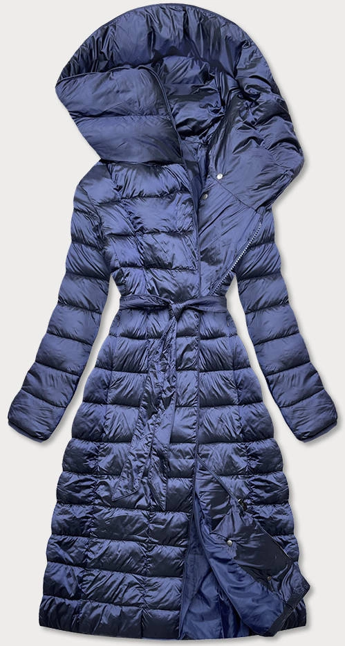 PIKOWANY PŁASZCZ Z WYSOKĄ STÓJKĄ I KAPTUREM GRANATOWY (J9-062)
