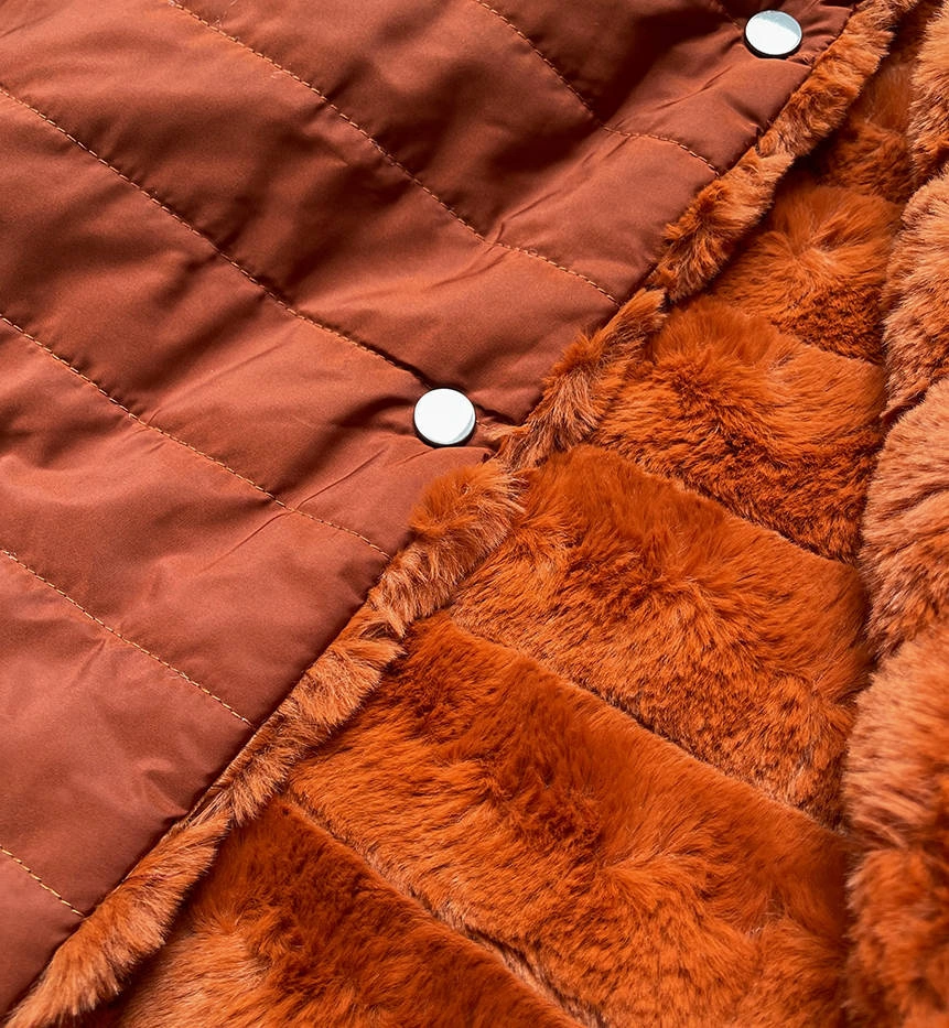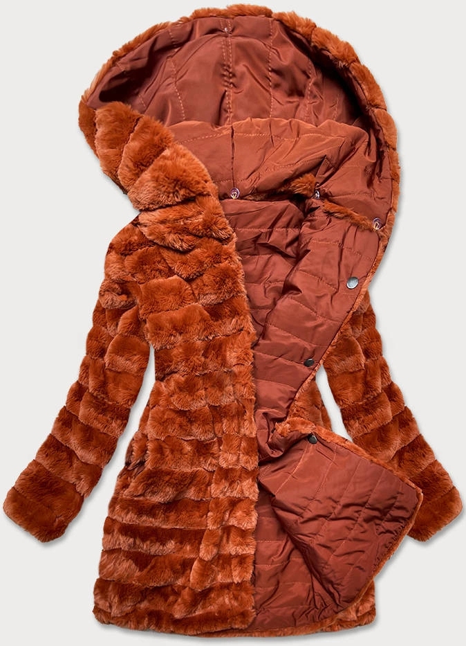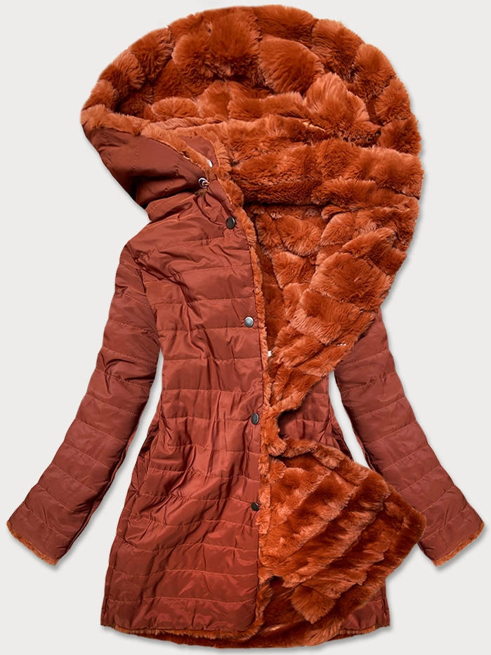 LEKKA KURTKA ZIMOWA DAMSKA FUTRO 2 W 1 RUDA (39039)