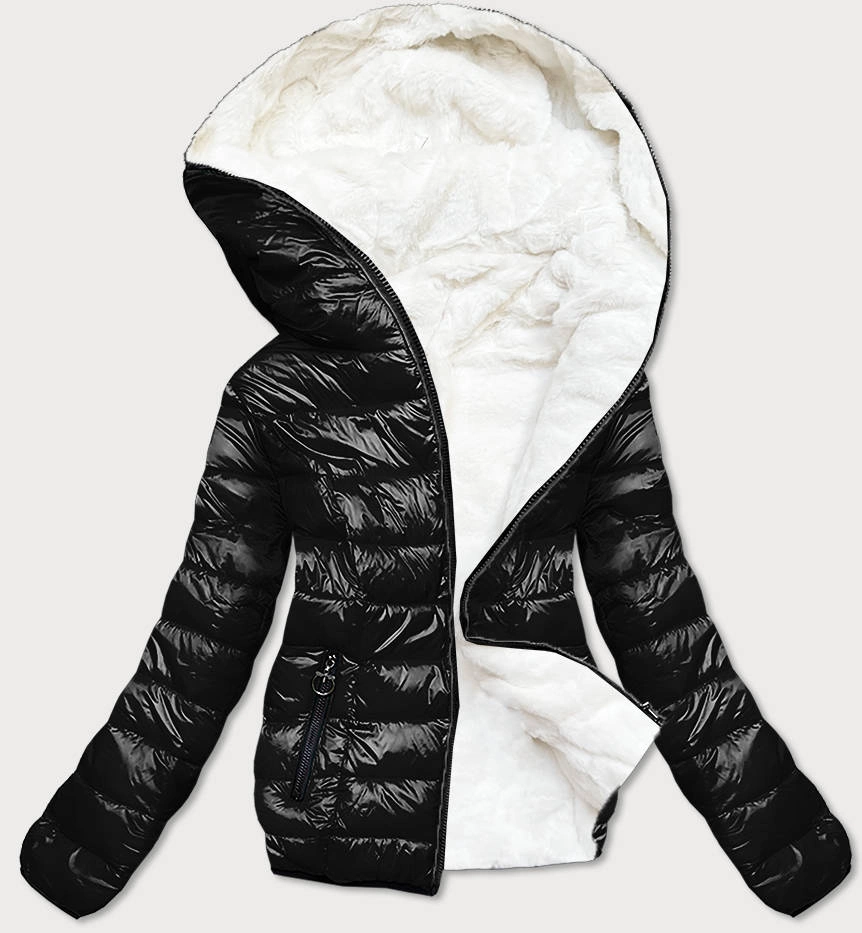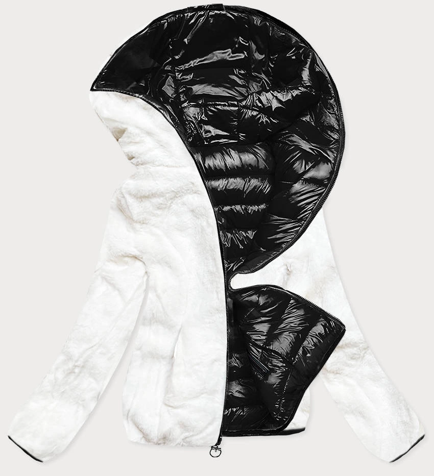 KRÓTKA DWUSTRONNA KURTKA DAMSKA ZIMOWA CZARNO-BIAŁA (B9580-1026)